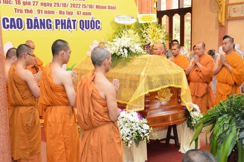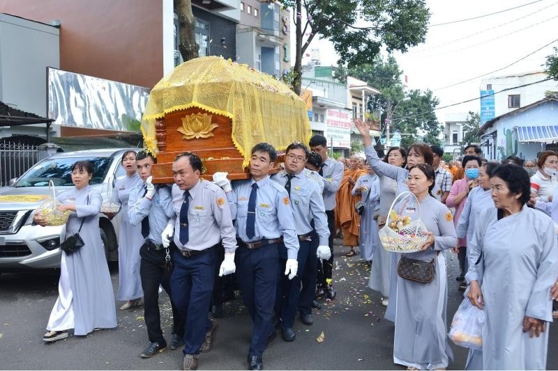 Sau đó, Hòa thượng Giác Pháp và Ban Nghi lễ thực hiện nghi thức di quan, môn đồ pháp quyến cung thỉnh bát hương, y bát, di ảnh cố Hòa thượng Thích Giác Phương rời Giác linh đường tịnh xá Ngọc Quang đến Đài hỏa táng Vĩnh Lương (TP.Nha Trang) trà-tỳ trong tiếng niệm Phật của đông đảo Tăng Ni, Phật tử.
