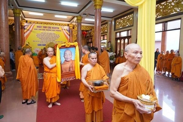 Đại diện Ban lãnh đạo Giáo đoàn III Hệ phái Khất sĩ đọc điếu văn tưởng niệm ghi nhận, tri ân công đức to lớn của cố Hòa thượng cho sự phát triển của Hệ phái Khất sĩ Giáo đoàn III; ngưỡng nguyện Giác linh cố Hoà thượng cao đăng Phật quốc, sớm trở lại Ta-bà để làm bậc mô phạm cho hàng Tăng Ni, Phật tử nương theo tu học.
