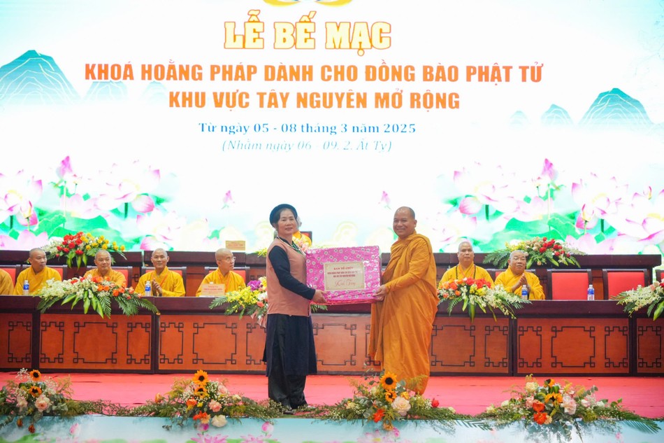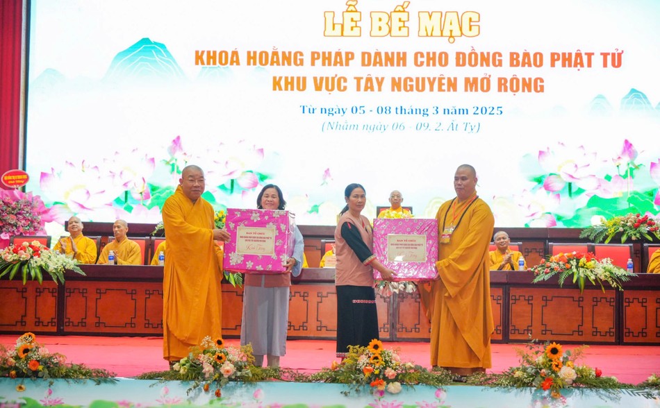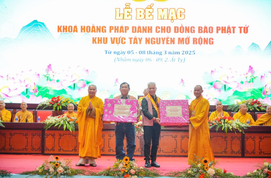 Tại buổi lễ bế mạc, chư tôn đức đã trao những phần quà khích lệ đến đại diện các Phật tử các tỉnh thành, trao Bằng tuyên dương công đức cho các tỉnh thành có thành tích xuất sắc trong khóa tu lần này; các Tiểu ban ngoại hộ và trao giấy chứng nhận cho các Phật tử đại diện cho 14 tỉnh thành tham dự khóa Hoằng pháp năm 2025.