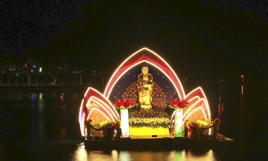 Hàng nghìn hoa đăng được thả xuống Hồ Tây trong sự nhất tâm cầu nguyện cho đạo pháp được trường tồn, đất nước thanh bình, nhân dân an lạc đã tỏa sáng lung linh trong đêm.