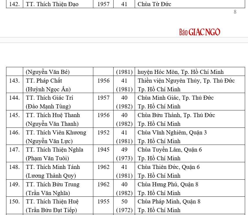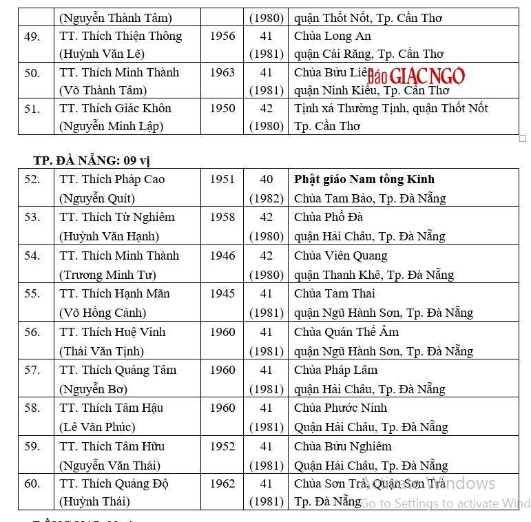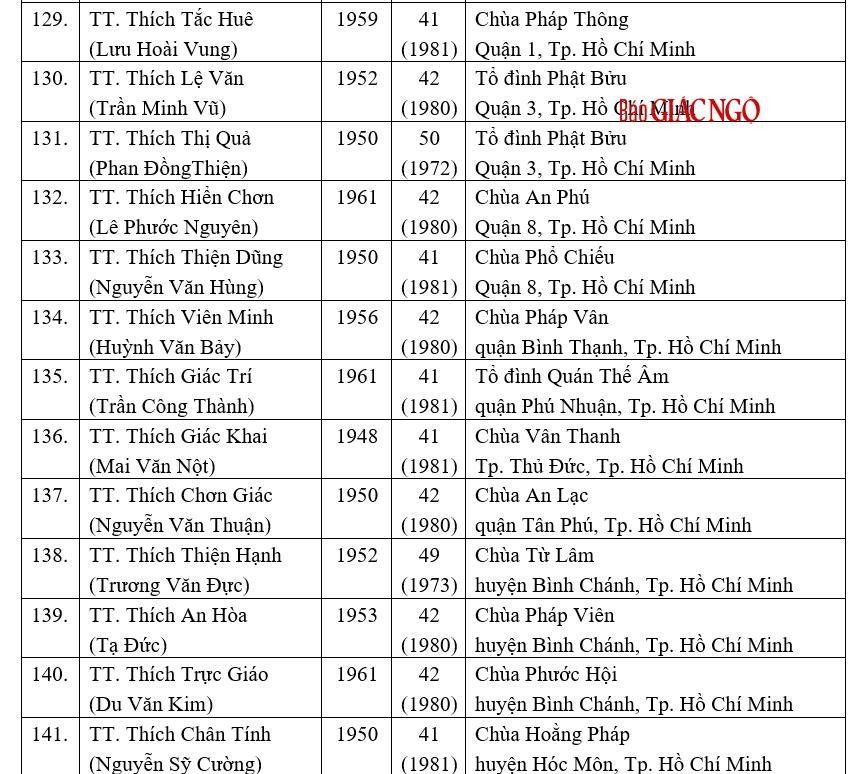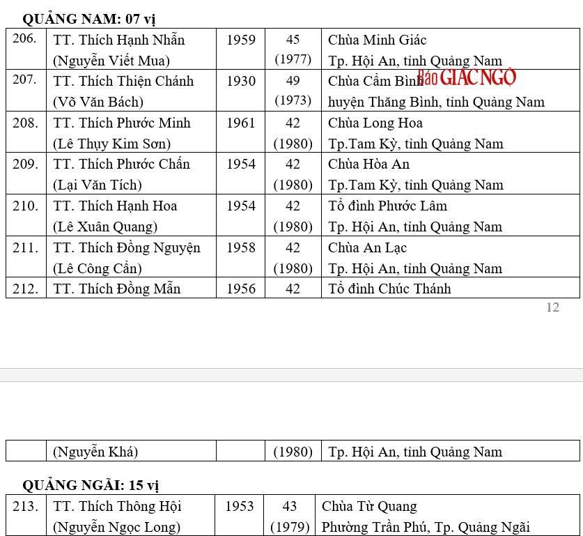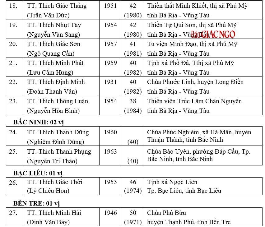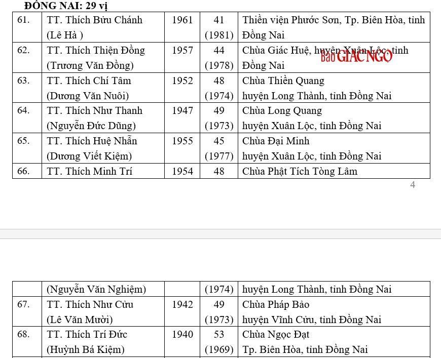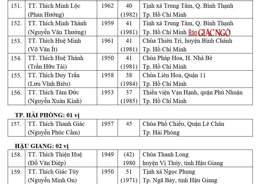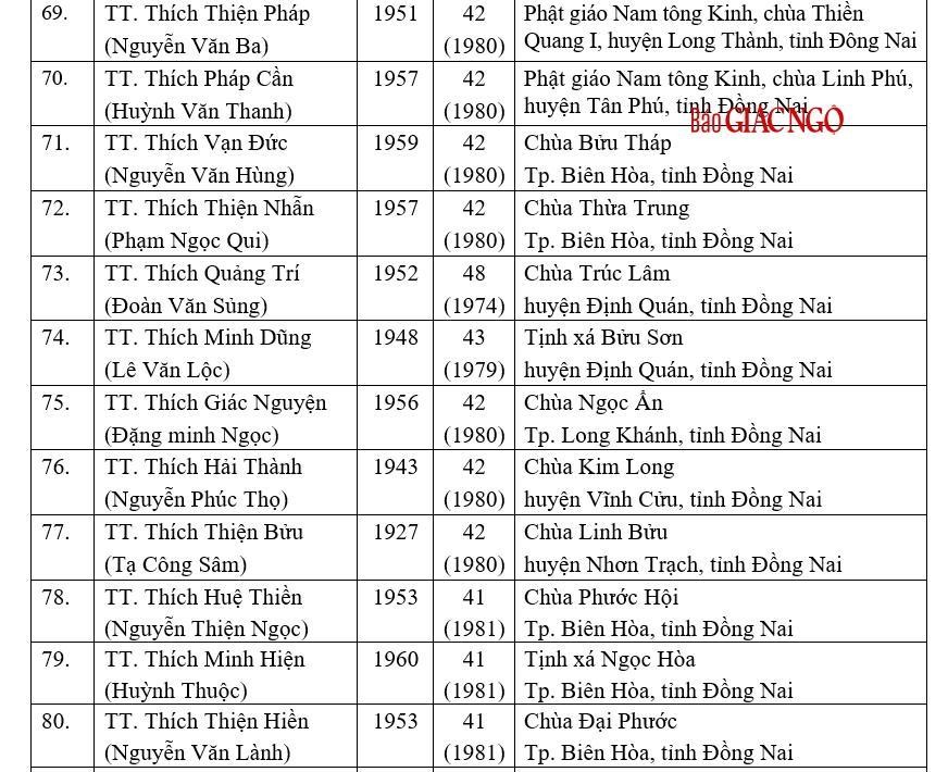 Chân dung Trưởng ban và danh sách Phó Thường trực, Chánh Thư ký Ban Trị sự GHPGVN 15 tỉnh thành mới phía Nam