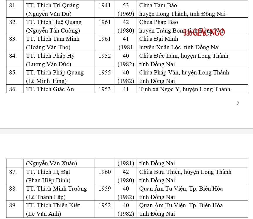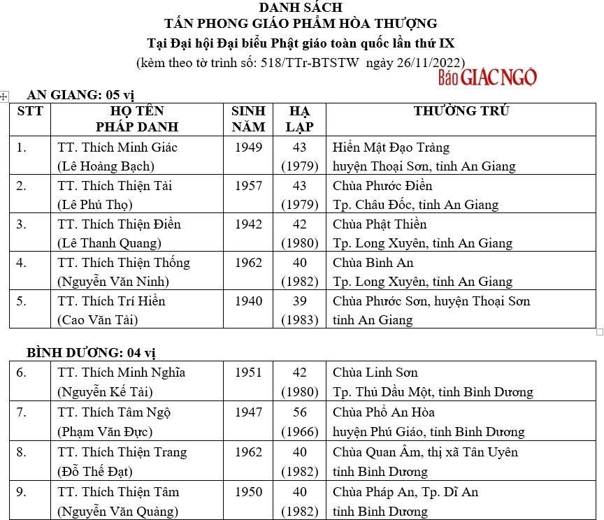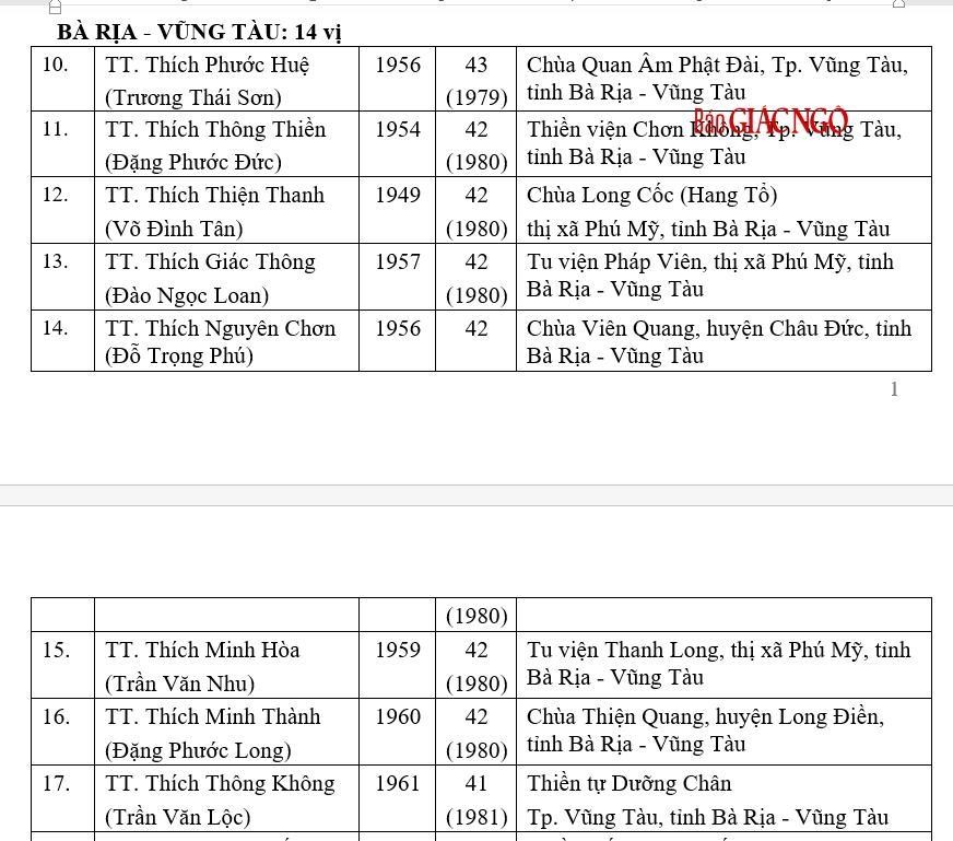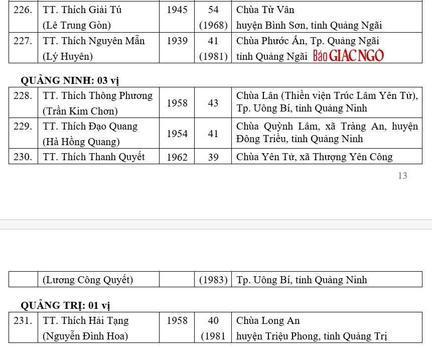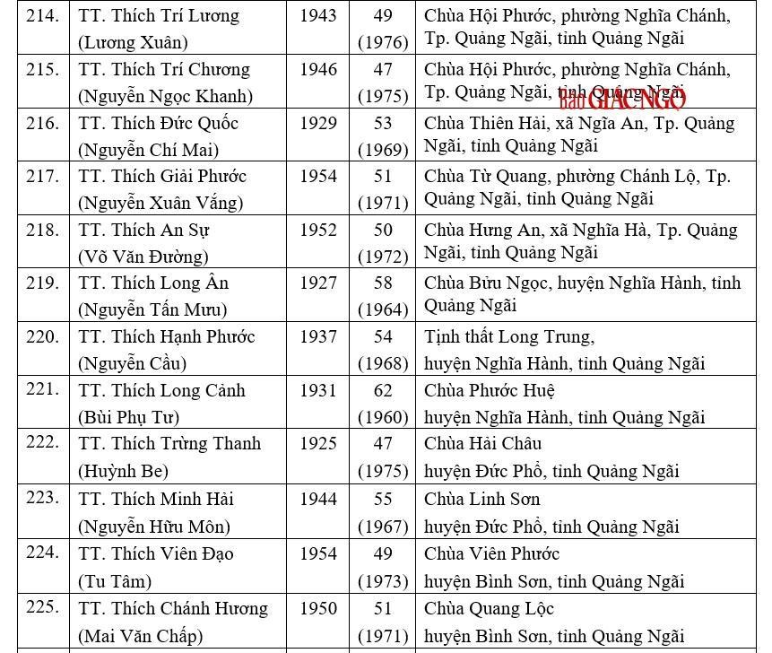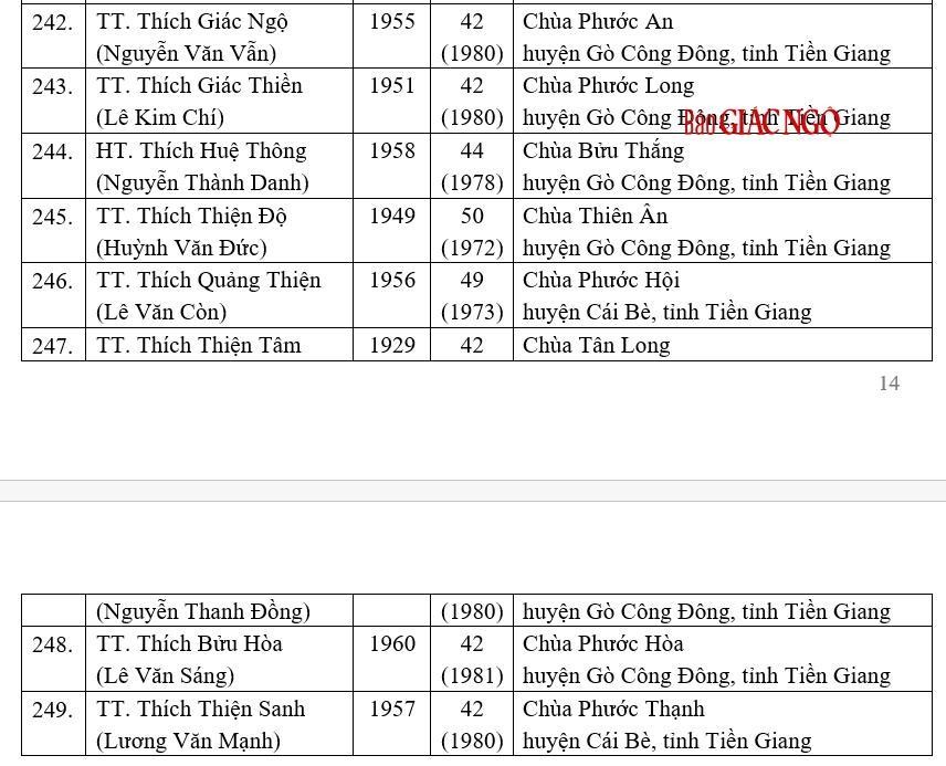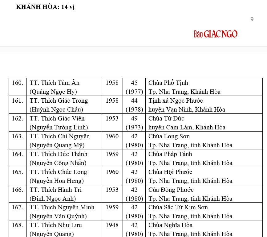 Chân dung Trưởng ban và danh sách Phó Thường trực, Chánh Thư ký Ban Trị sự GHPGVN 15 tỉnh thành mới phía Nam