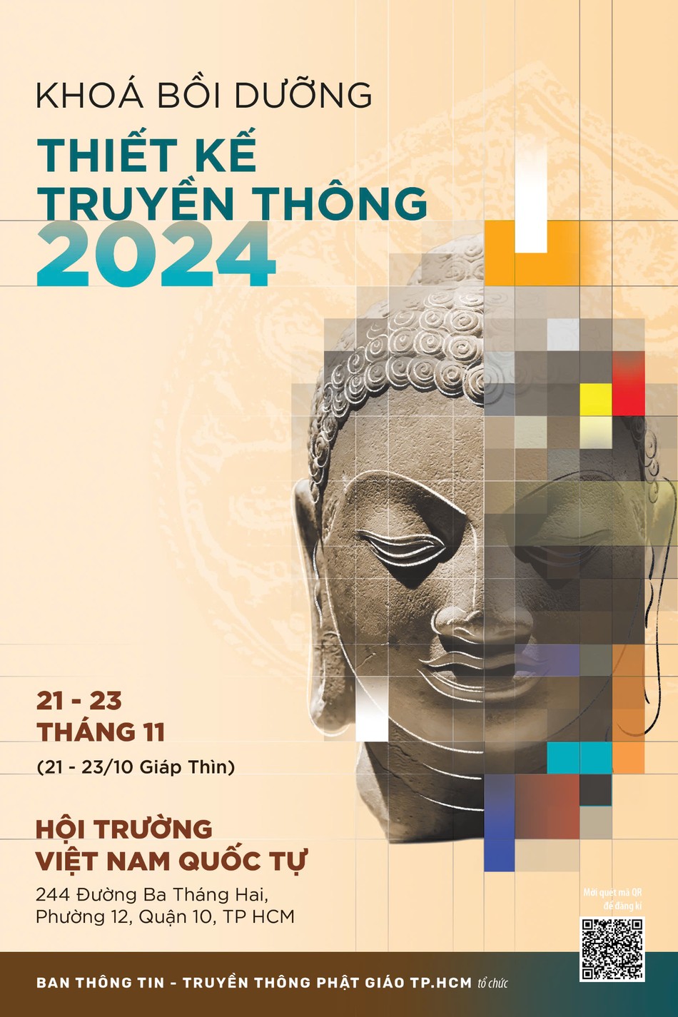 Được sự chấp thuận của Ban Thường trực Ban Trị sự Phật giáo TP.HCM, Ban Tôn giáo (Sở Nội vụ) TP và Chính quyền Q.10, Ban Thông tin - Truyền thông Phật giáo TP.HCM tổ chức Khóa bồi dưỡng thiết kế truyền thông năm 2024.