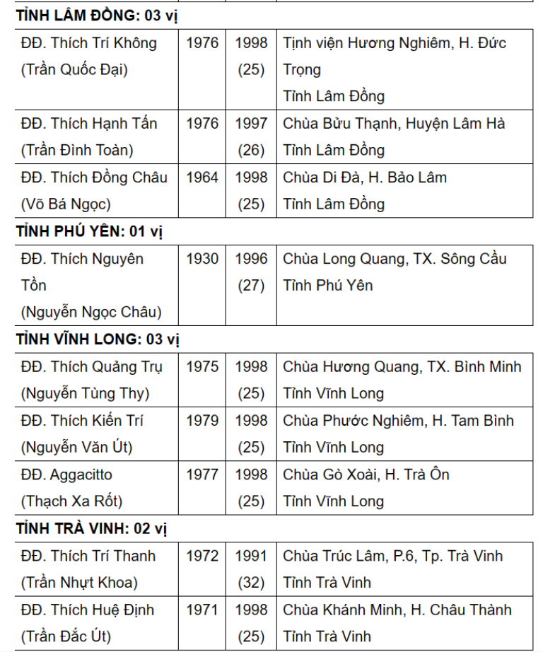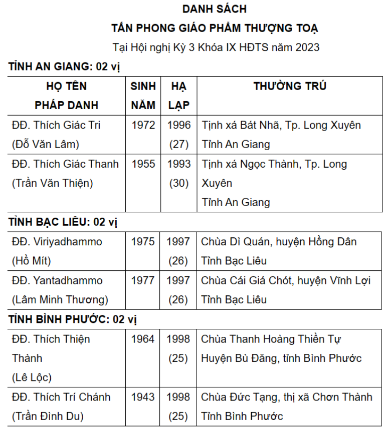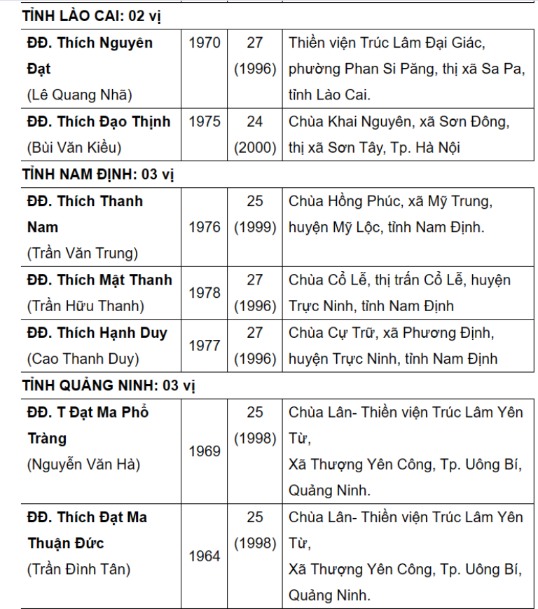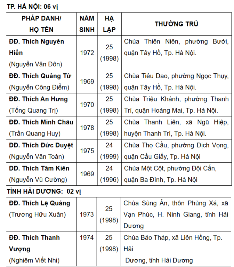 Được biết, danh sách này sẽ được Ban Thường trực Hội đồng Trị sự, Ban Tăng sự T.Ư đệ trình Đức Pháp chủ và Hội đồng Chứng minh xem xét, phê chuẩn.