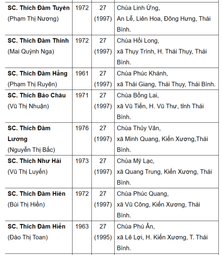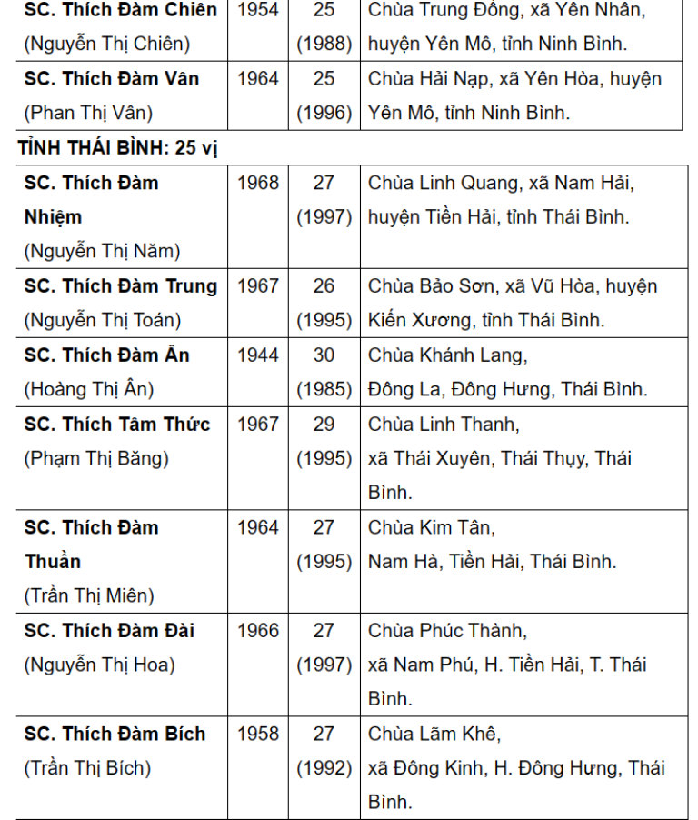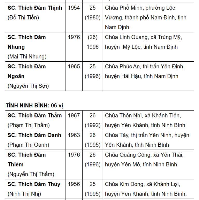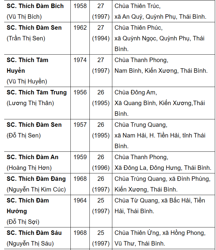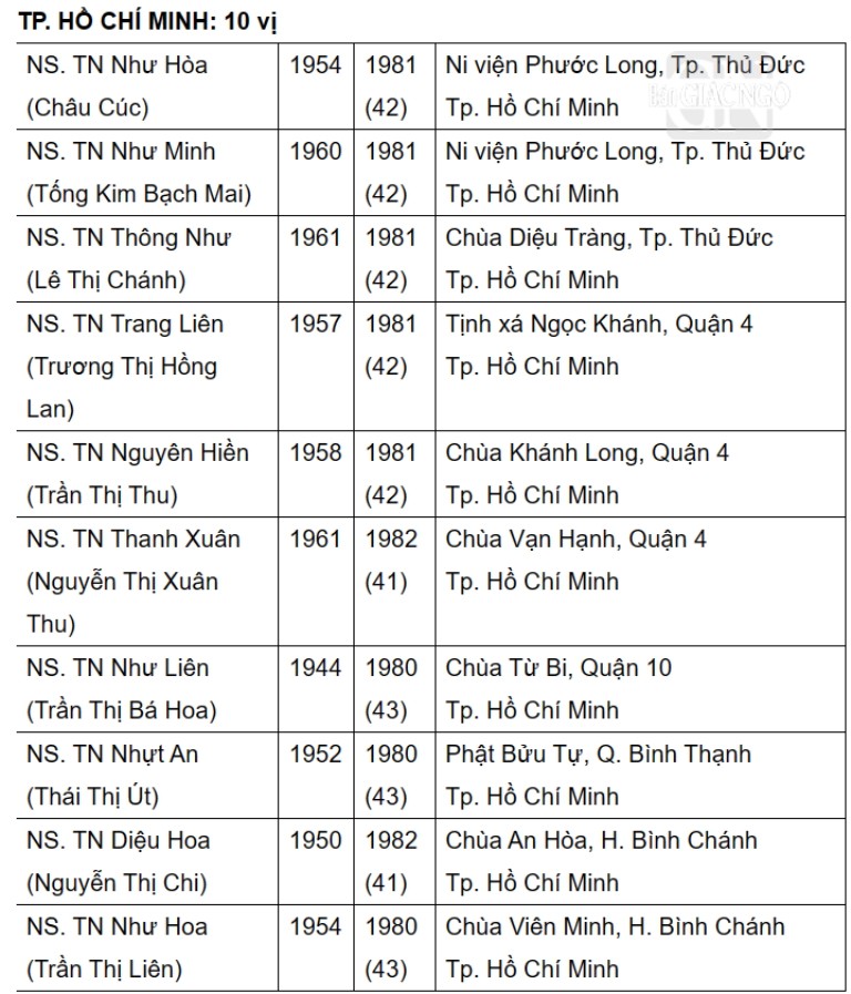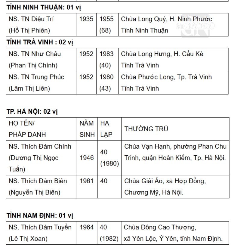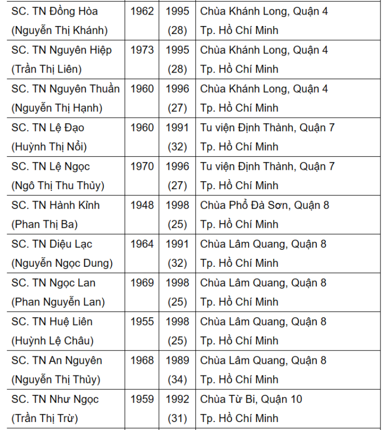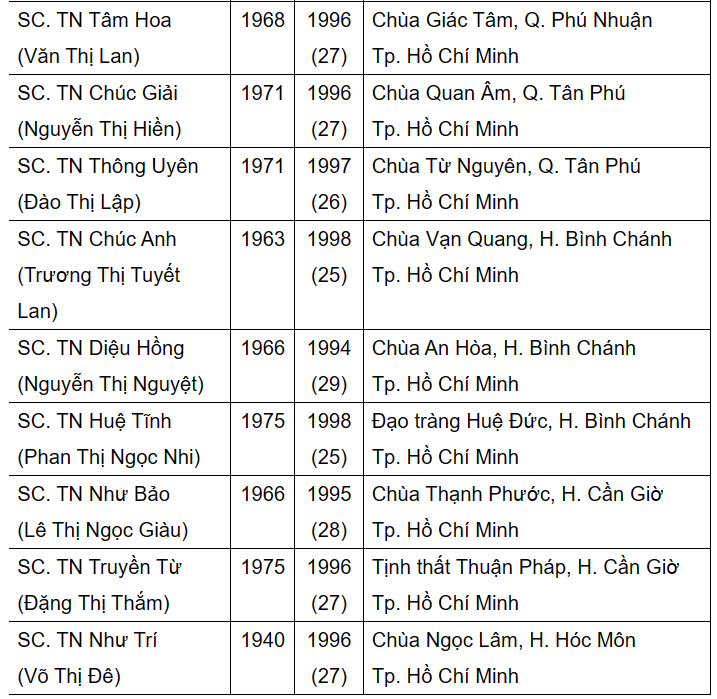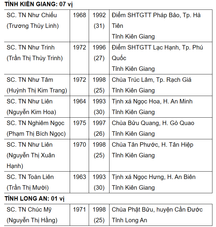 Danh sách đệ trình tấn phong giáo phẩm Ni trưởng, Ni sư tại Hội nghị Thường niên kỳ 3 - Khóa IX