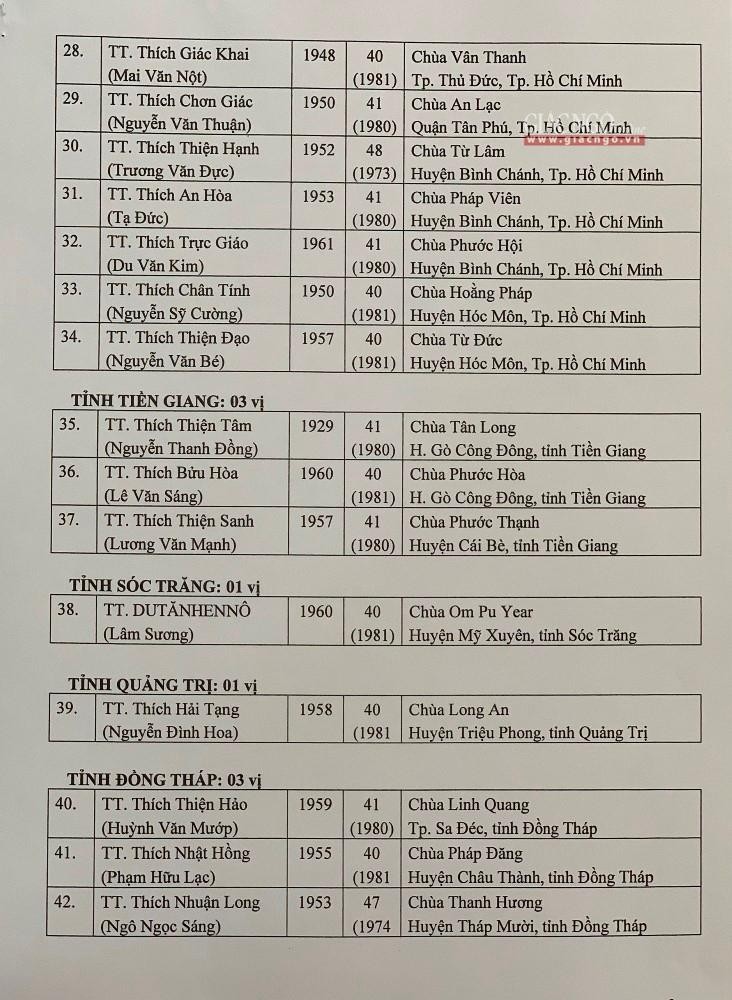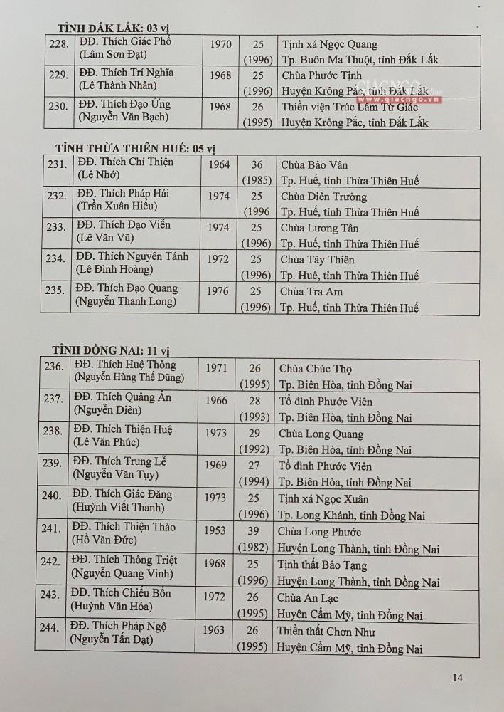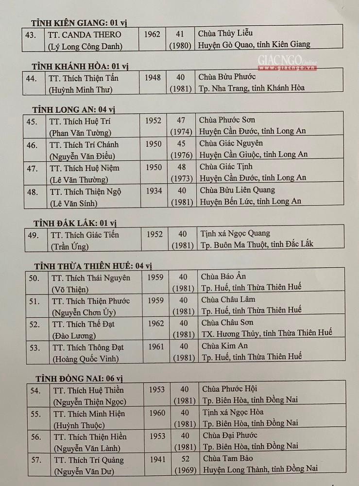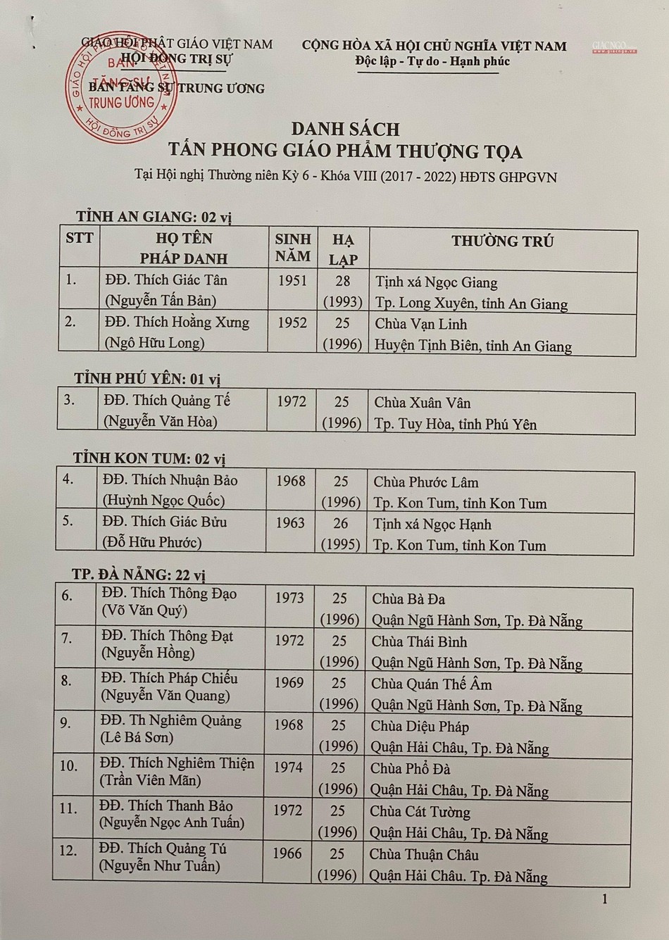 Giác Ngộ online sẽ cập nhật danh sách tấn phong giáo phẩm Ni trưởng, Ni sư đến bạn đọc.