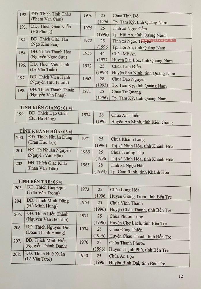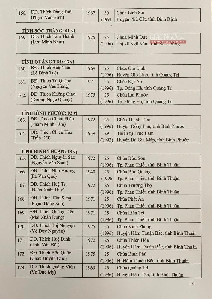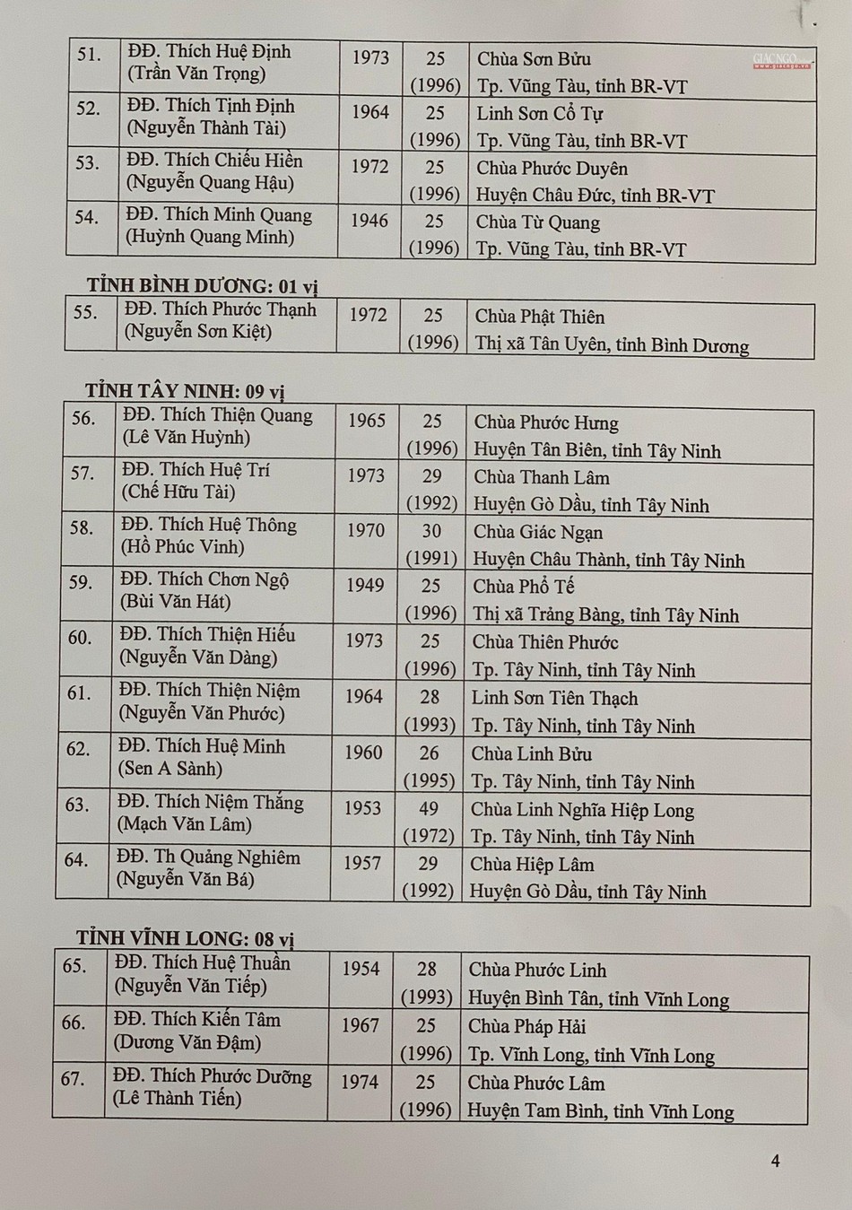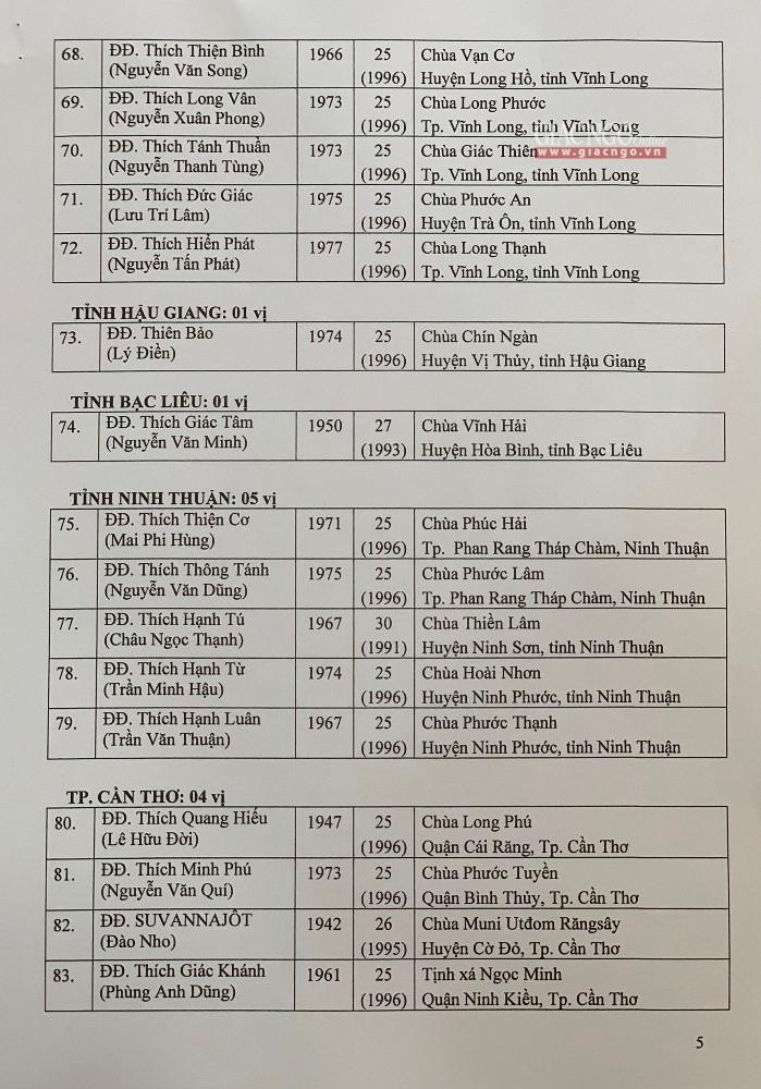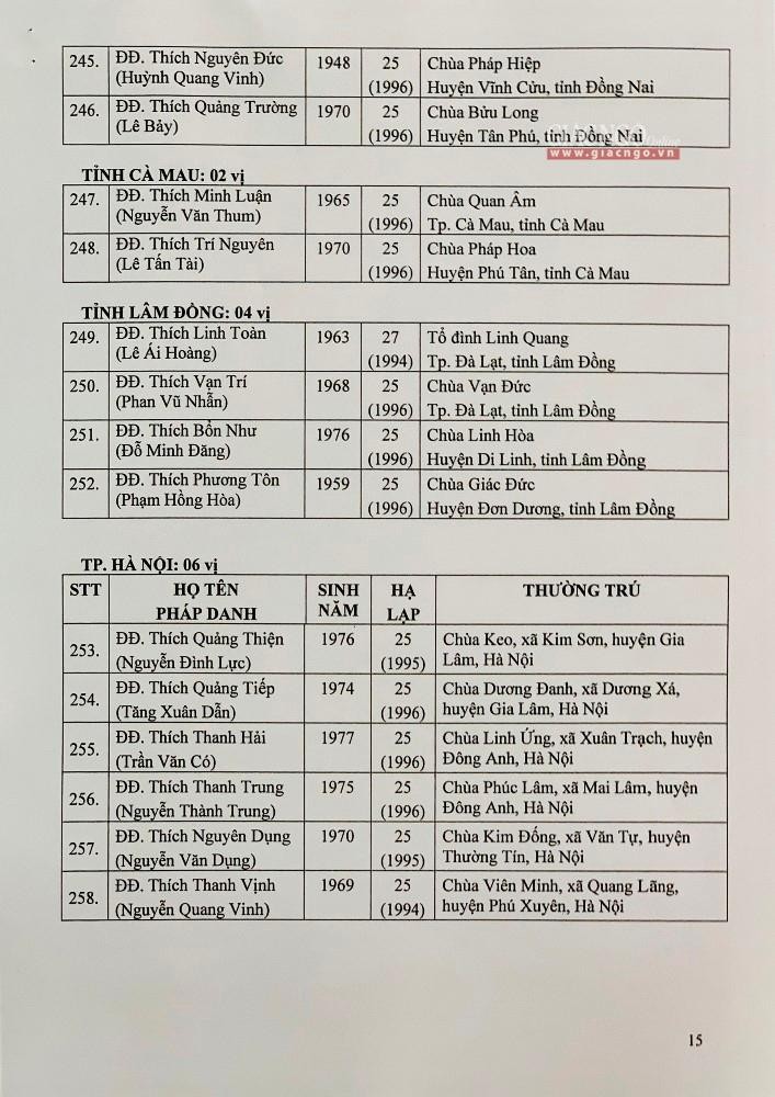 Giác Ngộ online sẽ cập nhật danh sách tấn phong giáo phẩm Ni trưởng, Ni sư đến bạn đọc.