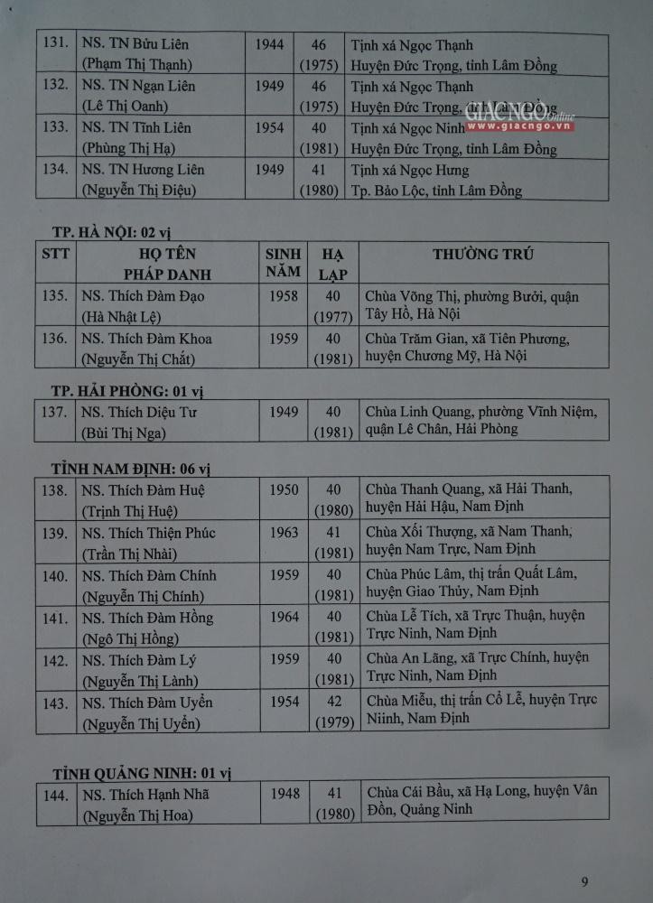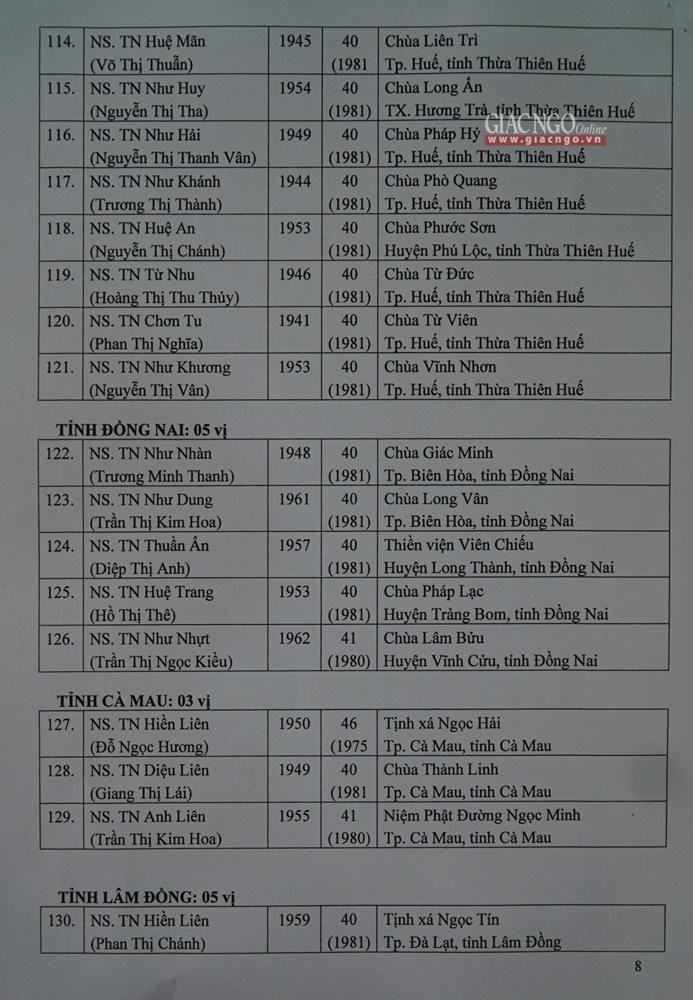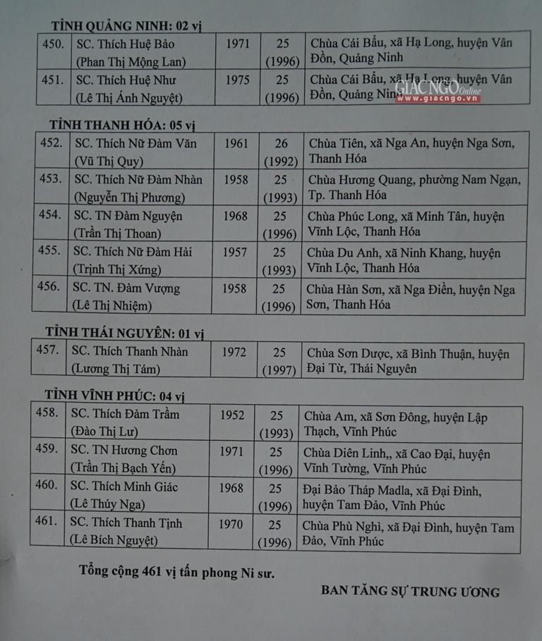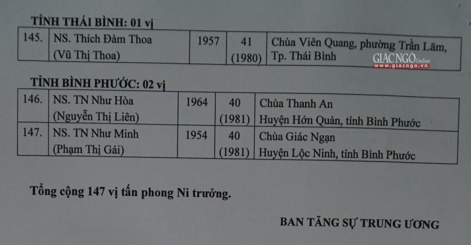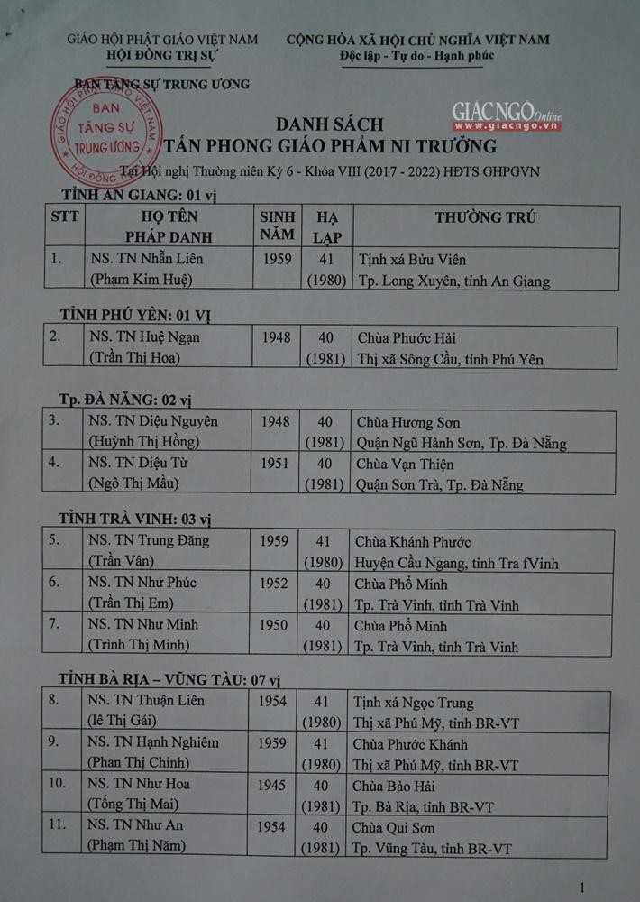 GNO - Hội nghị kỳ 6 - Khóa VIII (2017-2022), Ban Tăng sự đã trình và được Hội nghị thông qua danh sách tấn phong 147 vị Ni sư lên giáo phẩm Ni trưởng, 461 vị Sư cô tấn phong lên giáo phẩm Ni sư.