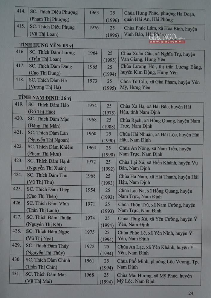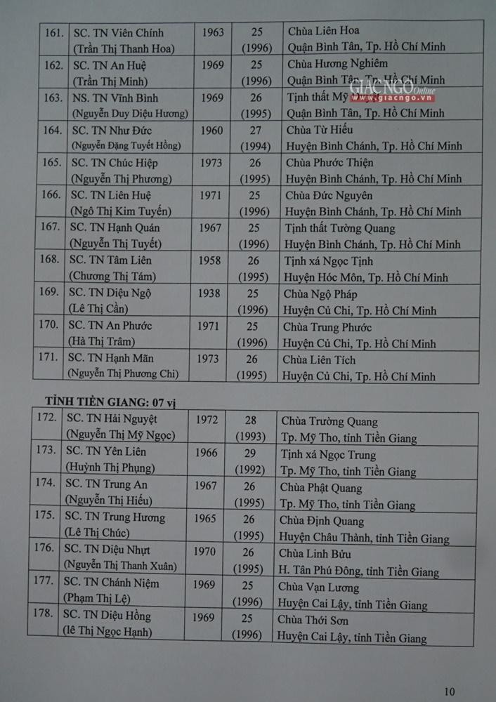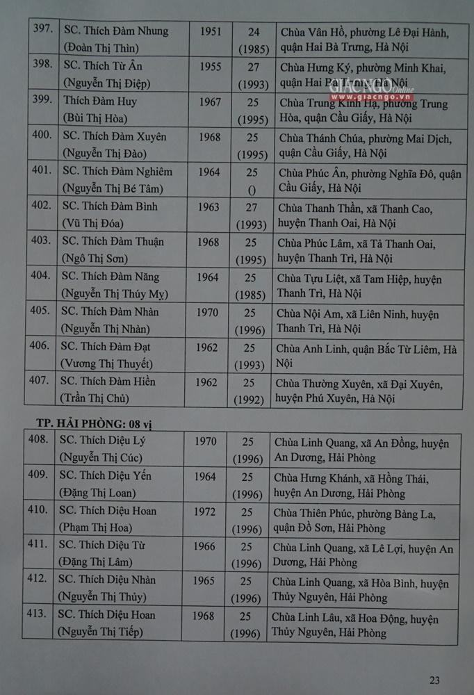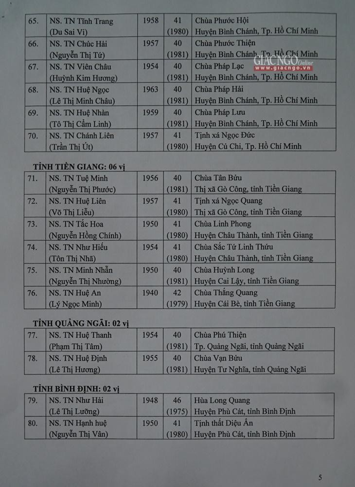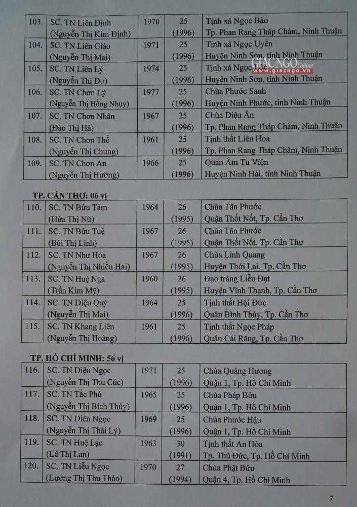 GNO - Hội nghị kỳ 6 - Khóa VIII (2017-2022), Ban Tăng sự đã trình và được Hội nghị thông qua danh sách tấn phong 147 vị Ni sư lên giáo phẩm Ni trưởng, 461 vị Sư cô tấn phong lên giáo phẩm Ni sư.