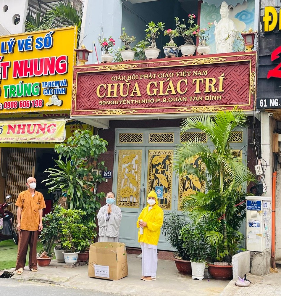 Mỗi tự viện được nhân một phần quà gồm: 60 kg các loại như: Củ cải, bí đỏ, mướp, bầu, bí... cúng dường các chùa yên tu cùng chung tay phòng dịch. Các phần hỗ trợ này đã được Thượng tọa Thích Từ Trí, Phó Thường trực Ban Trị sự GHPGVN quận Tân Bình cùng Đại đức Thích Trí Lực, trụ trì chùa Giác Tánh và các Phật tử vận chuyển cúng dường đến các tự viện.