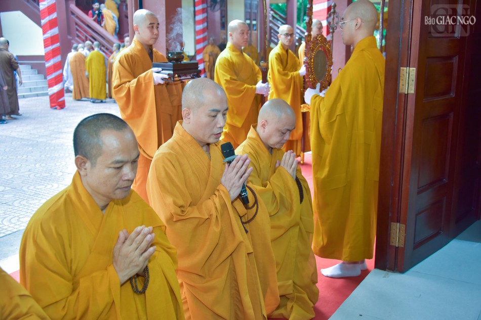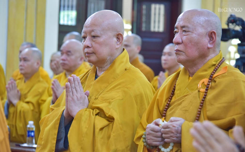 Đức Pháp chủ và Trưởng lão Hòa thượng Chủ tịch Hội đồng Trị sự GHPGVN cũng đã dâng trà cúng dường lên các bậc Thầy, chư vị giáo phẩm đã viên tịch. Hội chúng đồng tụng Tứ hoằng thệ nguyện nhất tâm cầu nguyện, tưởng nhớ đến các bậc tiền bối có nhiều đóng góp cho Đạo pháp.