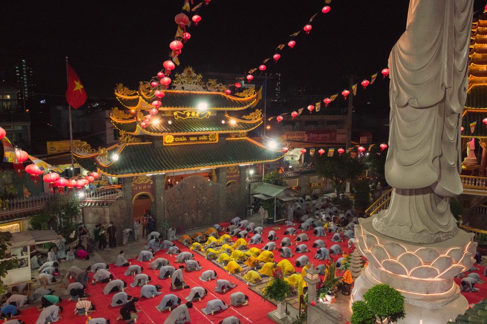 Kết thúc đêm hoa đăng cũng là khép lại khoá tu Phật thất tại chùa Vạn Đức - luân phiên niệm Phật, kinh hành và tĩnh toạ 24/24. Pháp hội hoàn mãn trong niềm hỷ lạc của toàn thể hội chúng.
