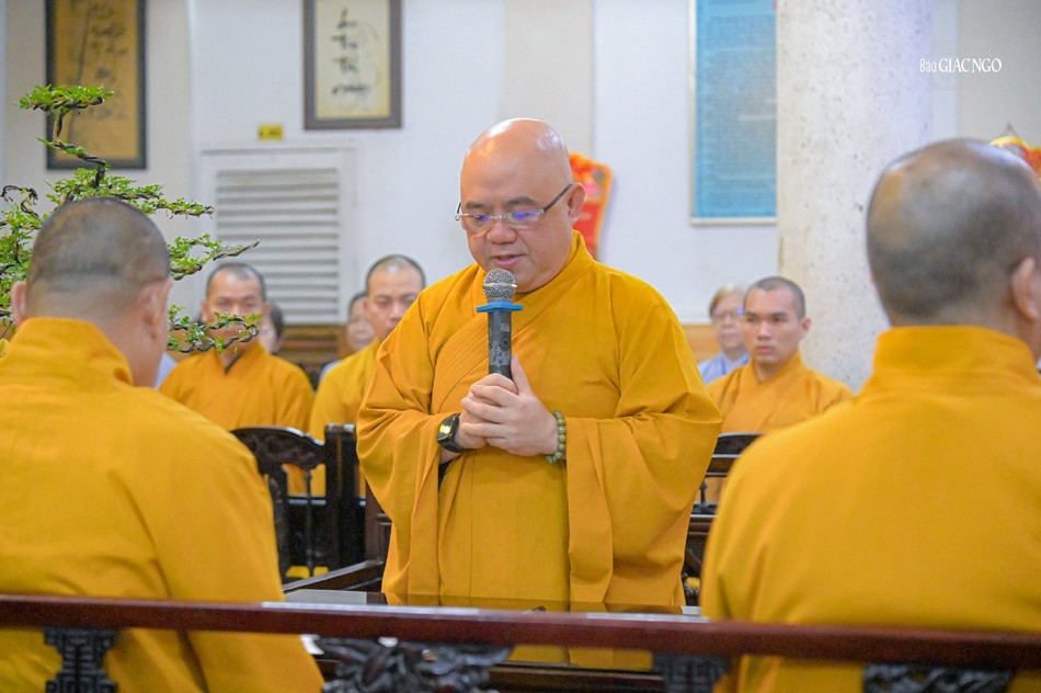 Hòa thượng Thích Chơn Không sách tấn chư Tăng trường hạ chùa Đại Giác (Q.Phú Nhuận) |