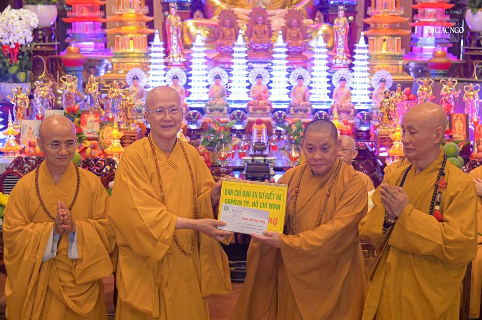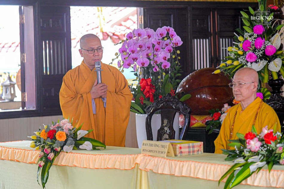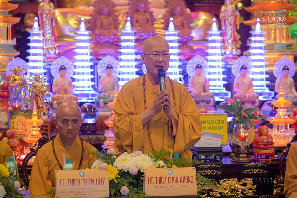 Đi cùng đoàn có Hòa thượng Thích Chơn Không, Ủy viên Thường trực Ban Trị sự, Trưởng ban Hướng dẫn Phật tử GHPGVN TP.HCM; Thượng tọa Thích Nhuận Hạnh, Ủy viên Ban Trị sự, Phó Chánh Văn phòng Ban Trị sự GHPGVN TP.HCM; Ni sư Thích nữ Như Nguyệt, Ủy viên Thường trực Ban Trị sự GHPGVN TP.HCM.