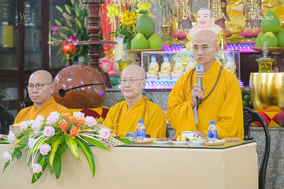 Thay mặt Ban Trị sự GHPGVN Q.Phú Nhuận và Ban Chức sự các hạ trường, Thượng tọa Thích Trí Thanh, Phó Trưởng ban kiêm Chánh Thư ký Ban Trị sự quận gửi lời tri ân đến chư tôn đức trong đoàn đã đến thăm và sách tấn chư hành giả an cư.