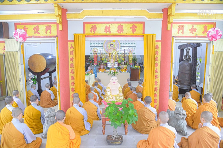 Theo báo cáo, chùa Đại Giác có 49 hành giả an cư, luôn tuân thủ nghiêm các thời khóa, với 4 thời khóa chính là lễ kinh Dược Sư tại chánh điện, 4 thời lễ kinh Diệu pháp liên hoa tại tổ đường và dành 1 thời khóa cho chư hành giả tự chọn pháp môn hành trì như: lễ ngũ bách danh, lễ vạn Phật, trì chú, thiền tọa, niệm Phật...