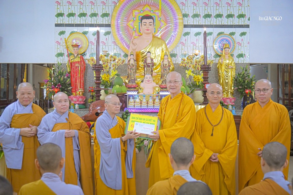 Tại hạ trường chùa Đại Giác (Q.Phú Nhuận): tiếp đón phái đoàn chư tôn đức Ban Trị sự GHPGVN TP.HCM có Thượng tọa Thích Minh Cường, Thiền chủ trường hạ; Thượng tọa Thích Minh Kính, Hóa chủ; Đại đức Thích Thiện Chí, Phó Thiền chủ kiêm Thư ký trường hạ.