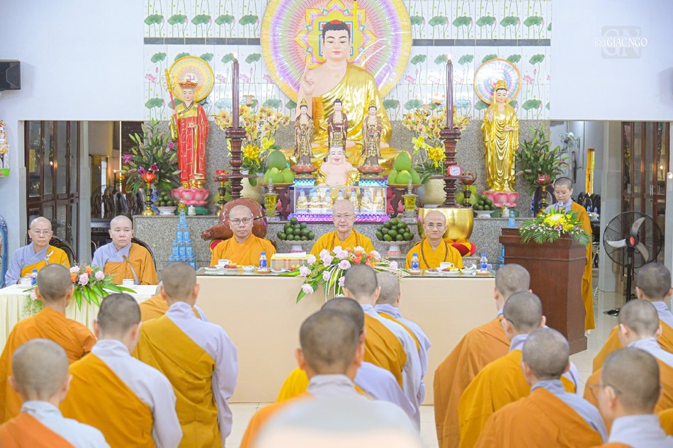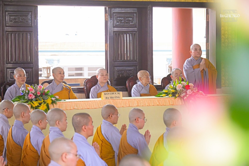 Trong không khí trang nghiêm, sau báo cáo của chư Ni tại hạ trường, Thượng tọa Thích Thiện Quý đã gửi lời chúc sức khỏe đến Ban Chức sự và sách tấn chư hành giả phải luôn tinh tấn tu học, hạn chế tiếp xúc với các ngoại duyên, lấy giới luật làm thầy, nhằm thúc liễm thân tâm, trau dồi giới đức.