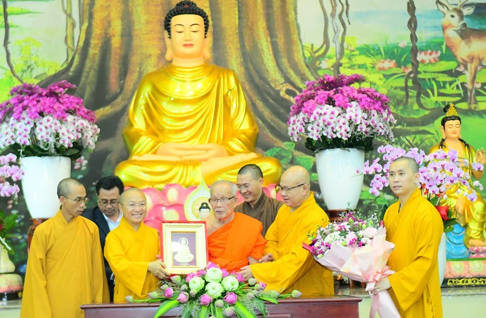 Thượng tọa Thích Nhật Từ, Ủy viên Thường trực Hội đồng Trị sự, Phó Viện trưởng Thường trực Học viện Phật giáo VN tại TP.HCM cùng chư tôn đức Hội đồng Điều hành, Ban Quản viện đã hoan hỷ đón tiếp phái đoàn.