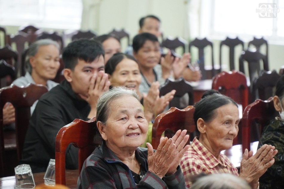 Cụ bà ôm chặt món quà được đoàn GHPGVN trao tặng