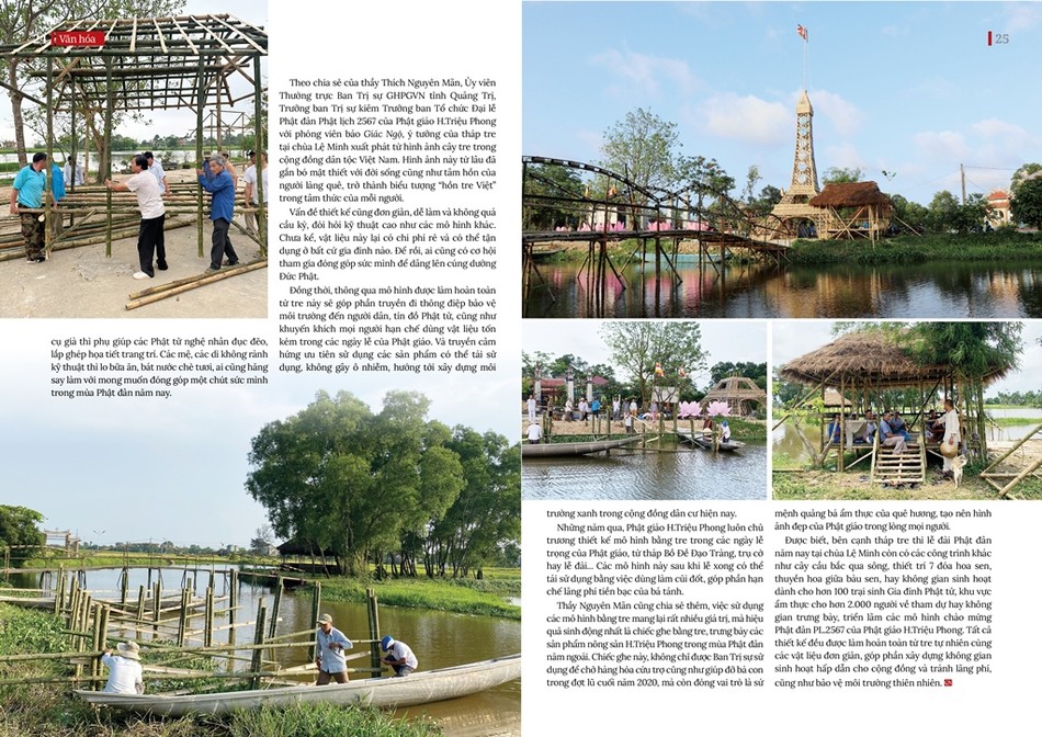 Những năm qua, Phật giáo H.Triệu Phong luôn chủ trương thiết kế mô hình bằng tre trong các ngày lễ trọng của Phật giáo, từ tháp Bồ Đề Đạo Tràng, trụ cờ hay lễ đài... Các mô hình này sau khi lễ xong có thể tái sử dụng bằng việc dùng làm củi đốt, góp phần hạn chế lãng phí tiền bạc của bá tánh.