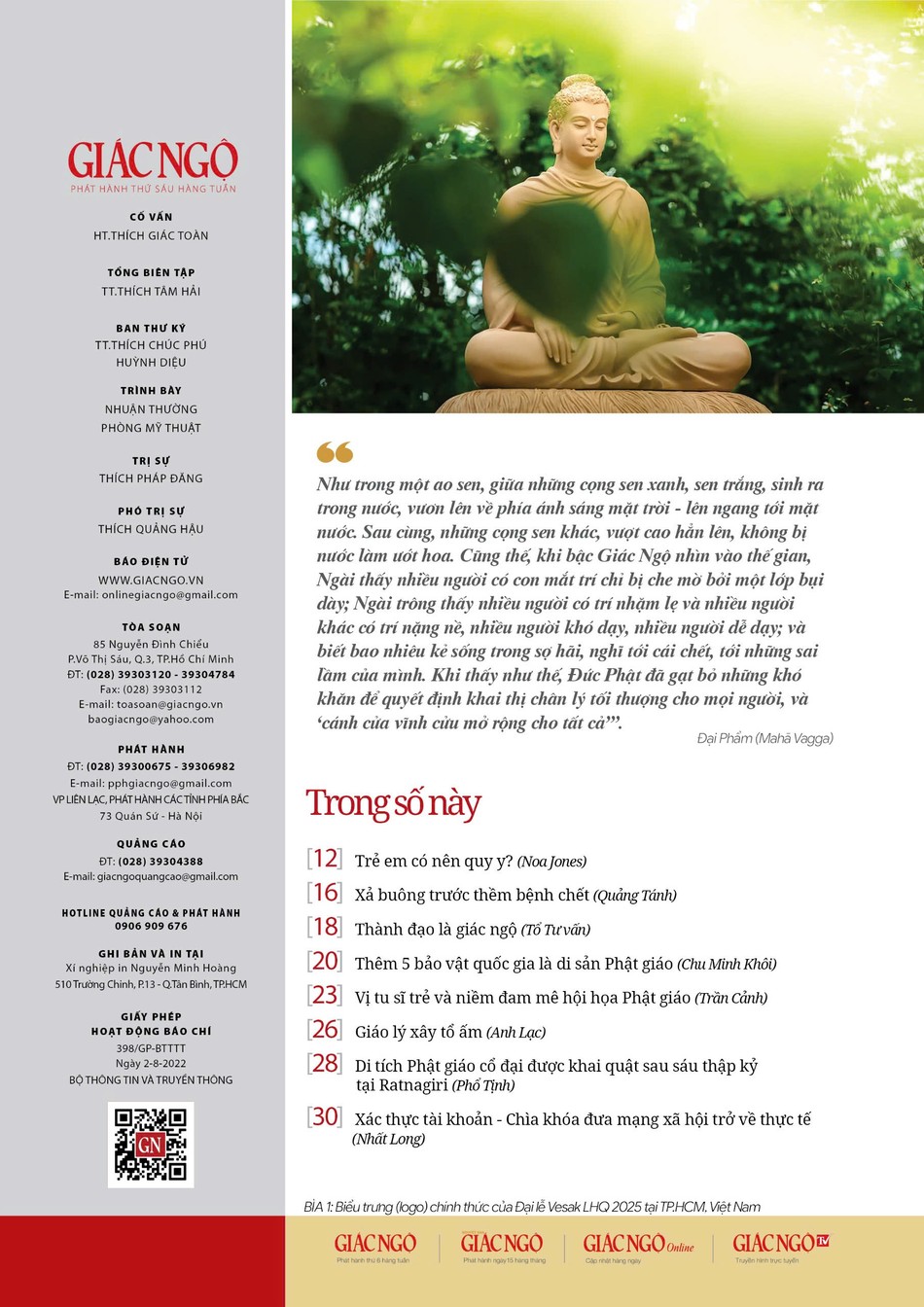 - Các chuyên mục khác: "Di tích Phật giáo cổ đại được khai quật sau sáu thập kỷ tại Ratnagiri" (Phổ Tịnh tổng hợp); "Xác thực tài khoản - Chìa khóa đưa mạng xã hội trở về thực tế" (Nhất Long)... cùng những tin tức Phật giáo nổi bật.