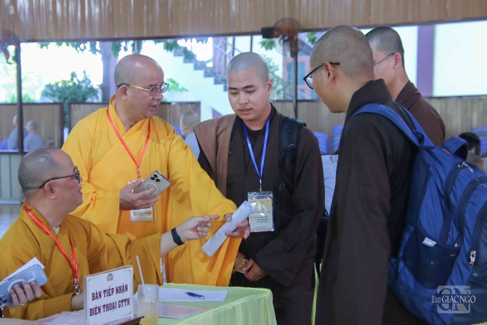 GNO - Sáng nay, 25-4, các giới tử Đại giới đàn Đạt Thanh tập trung làm thủ tục nhập chúng tại chùa Tỉnh Hội (TP.Biên Hòa), chính thức bắt đầu sinh hoạt ngày đầu tiên của Đại giới đàn do Ban Trị sự GHPGVN tỉnh Đồng Nai tổ chức.