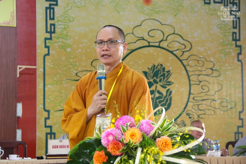 Thượng tọa Thích Đạo Huy báo cáo công tác tổ chức và thông qua nội quy kỳ thi |