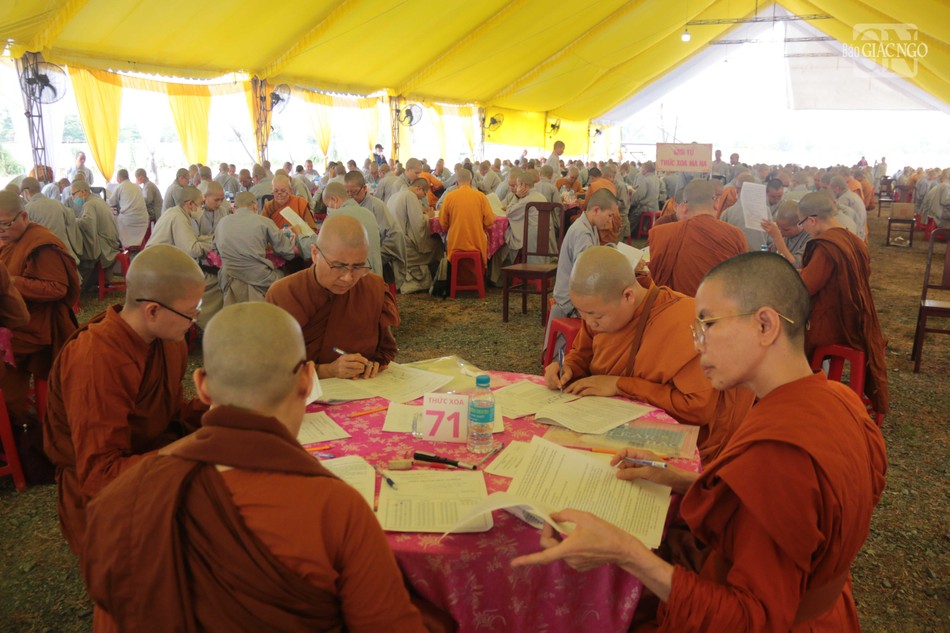 Chiều nay, chư tôn đức Ban Giám khảo chấm bài thi của các giới tử. Công tác chấm bài thi của giới tử, kết quả điểm của giới tử sẽ được Ban Giám khảo trình đến chư tôn đức Ban Kiến đàn Đại giới đàn Đạt Thanh trước khi công bố đến giới tử tại trang thông tin điện tử Phật giáo Đồng Nai.