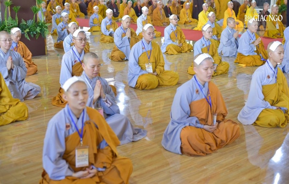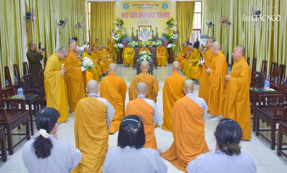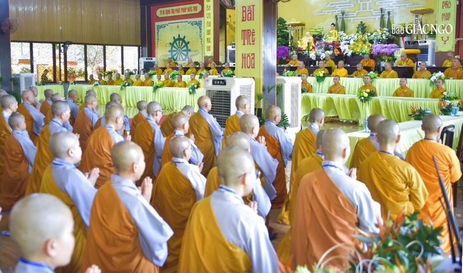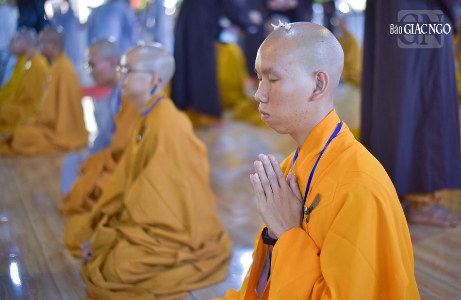 Trưởng lão Hòa thượng Thích Nhật Quang, Ủy viên Thường trực Hội đồng Chứng minh, Chứng minh Ban Trị sự GHPGVN tỉnh Đồng Nai niêm hương bạch Phật, cùng chư vị giới sư đảnh lễ Tam bảo, các vị Đại Bồ-tát và an vị pháp tòa.