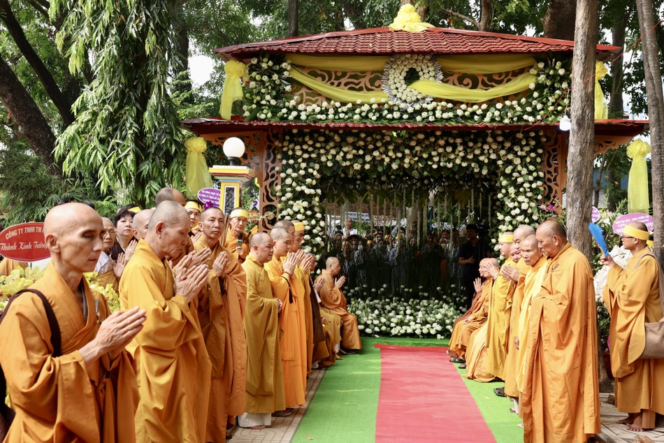 | Cung thỉnh kim quan cố Trưởng lão Hòa thượng rời Giác linh đường |