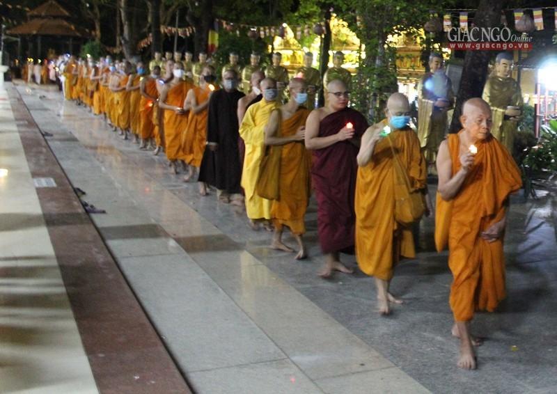 Dịp này, đại chúng thắp nến cầu nguyện, dâng hoa đăng nhiễu Phật, tụng kinh Tâm từ.