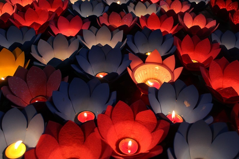 Lễ cúng đèn được thiền viện Phước Sơn cử hành vào tối ngày Rằm tháng Tư |