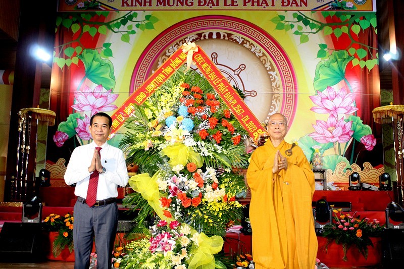 Tại Đại lễ, đại diện Tỉnh ủy, HĐND, UBND, UBMTTQ tỉnh, ông Cao Văn Quang, Chủ tịch UBMTTQVN tỉnh đọc thư chúc mừng Phật đản, có lời thăm hỏi, chúc mừng tốt đẹp nhất đến Tăng Ni, Phật tử.