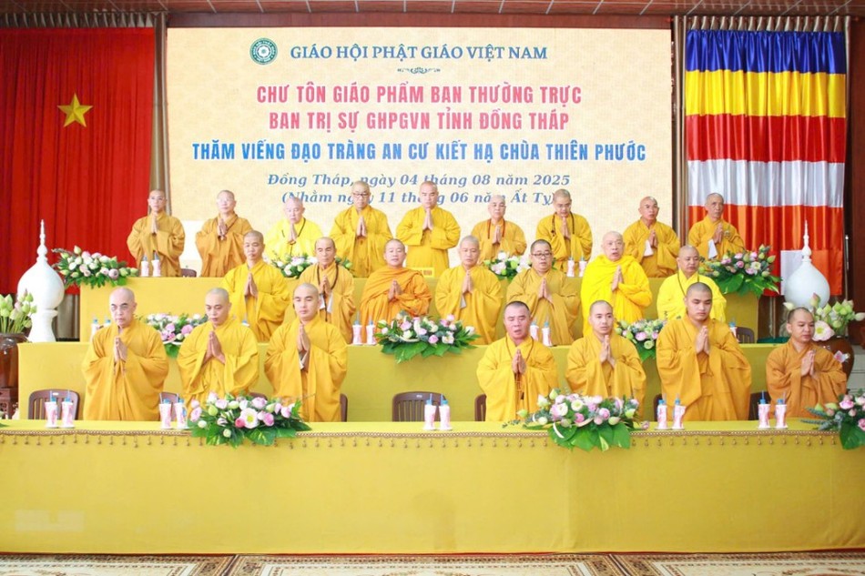Đoàn đến thăm các trường hạ chùa Thiên Phước (xã Mỹ An Hưng) với 54 hành giả; chùa Thanh Lương (P.Mỹ Trà) - điểm an cư dành cho Tăng sinh Trường Trung cấp Phật học Đồng Tháp với 45 hành giả; chùa Hải Huệ (P.Sa Đéc) có 65 hành giả và chùa Hưng Thiền (xã Mỹ Thọ) với 408 hành giả.