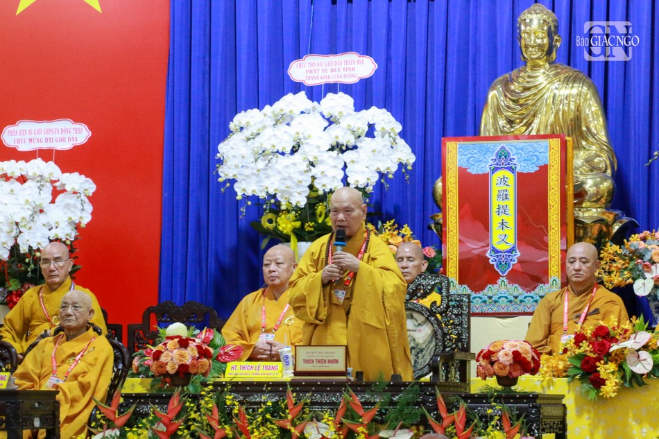Sau lời phát biểu khai mạc của Thượng tọa Chánh Chủ đàn Thích Tĩnh Triệt, Thượng toạ Thích Minh Sơn, Chánh Thư ký Ban Trị sự GHPGVN tỉnh Đồng Tháp đã báo cáo công tác tổ chức Đại giới đàn Thiện Huệ Phật lịch 2569.