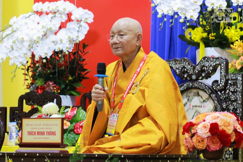 Trưởng lão Hòa thượng Chủ tịch Hội đồng Trị sự ôn lại công hạnh của Trưởng lão Hòa thượng Thích Thiện Huệ, tôn hiệu của Đại giới đàn do Ban Trị sự GHPGVN tỉnh Đồng Tháp tổ chức năm nay. Qua đó, ngài nhắn nhủ các giới tử noi gương đạo hạnh của các bậc kỳ túc, tinh tấn tu học để làm lợi ích cho Đạo pháp, góp phần vào sự phát triển của Giáo hội.