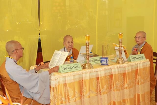 Theo luật Phật chế, chư tôn đức đã thực hiện các nghi thức tác pháp vấn hoà, hỏi các già nạn, bạch tứ yết-ma… Sau đó, Hòa thượng Đường đầu đã truyền giới tướng cho các giới tử theo từng đàn giới.
