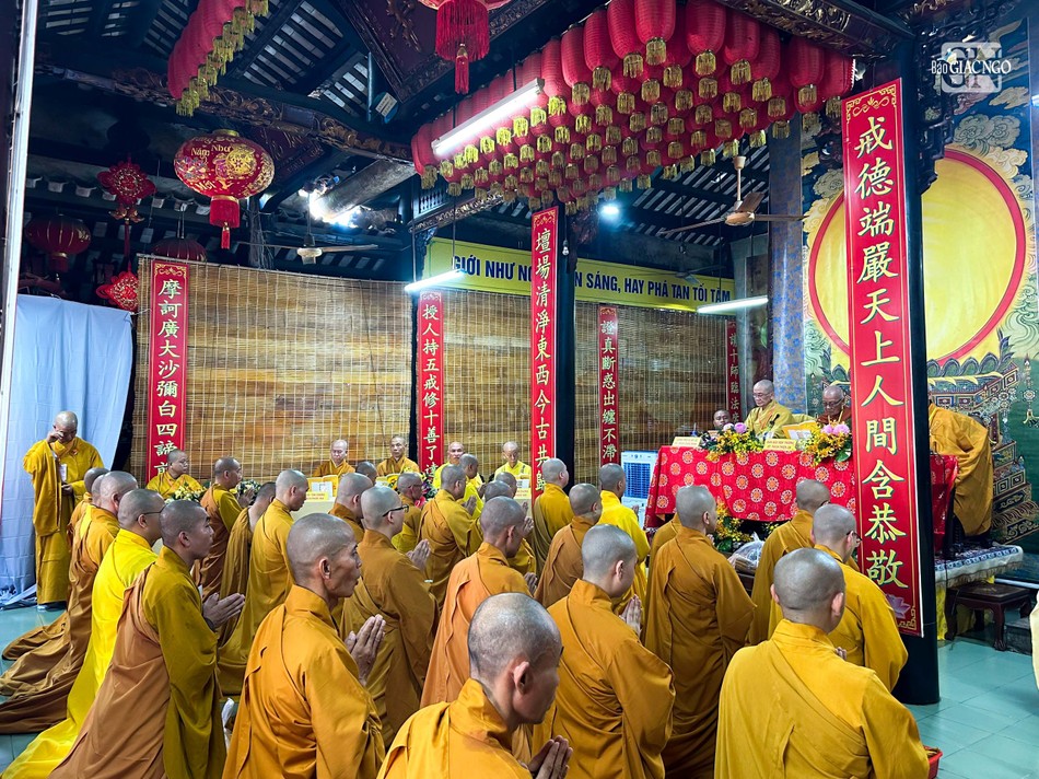 GNO - Chiều 5-4 và sáng 6-4, Ban Kiến đàn đã trang nghiêm cung thỉnh Hội đồng Giới sư quang lâm giới trường chùa Phước Hưng (dành cho Tăng), chùa Phước Huệ (dành cho Ni) tấn đàn truyền giới cho các giới tử.