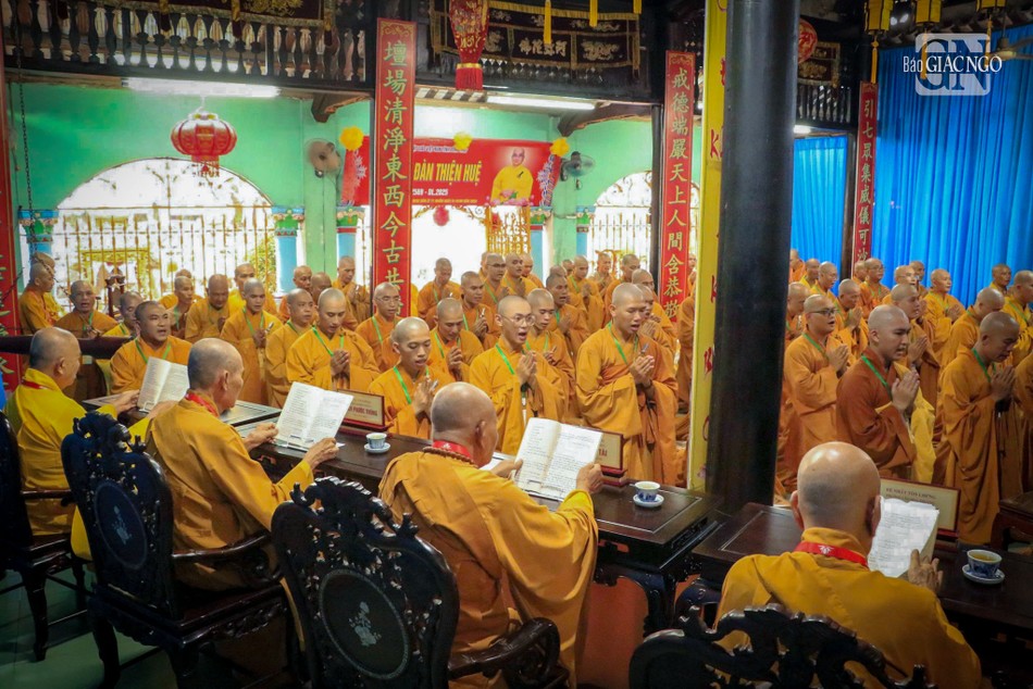 | Hội đồng Thập sư thực hiện nghi thức niêm hương bạch Phật, đảnh lễ Tam bảo |