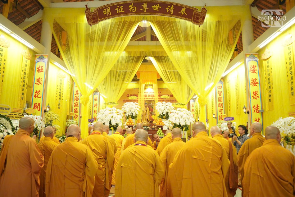 Tại Giác linh đường Trưởng lão Hòa thượng Thích Thiện An, chư tôn giáo phẩm đã thắp hương tưởng niệm. Hòa thượng Thích Lệ Trang, Phó Chủ tịch Hội đồng Trị sự, Trưởng ban Nghi lễ T.Ư xướng lễ cầu nguyện Giác linh Trưởng lão Hòa thượng được cao đăng thượng phẩm.