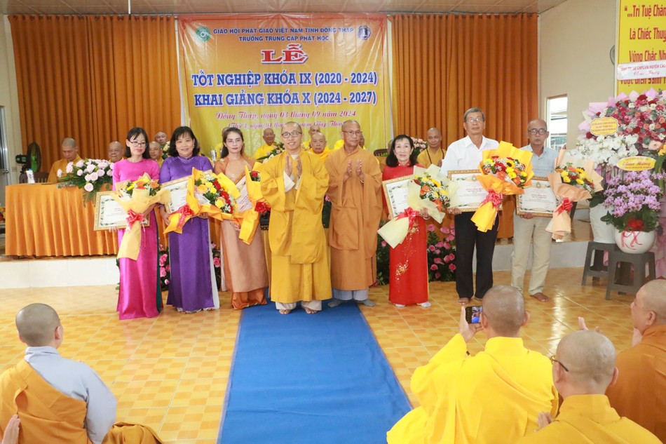 GNO - Ban Giám hiệu Trường Trung cấp Phật học tỉnh Đồng Tháp đã tổ chức Lễ tốt nghiệp Trung cấp Phật học khóa IX (2020-2024) và tổng khai giảng khóa X (2024-2027) vào sáng ngày 3-9 vừa qua.