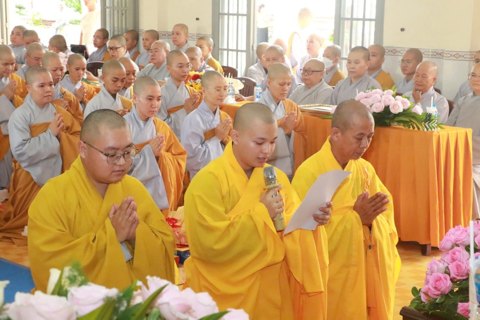 Tại buổi lễ, Thượng tọa Thích Minh Sơn, Chánh Thư ký Ban Trị sự GHPGVN tỉnh Đồng Tháp thông qua quyết định của Ban Trị sự GHPGVN tỉnh tặng Bằng công đức cho các tập thể và cá nhân đã đóng góp cho công tác đào tạo Tăng Ni sinh khóa IX được thành tựu.