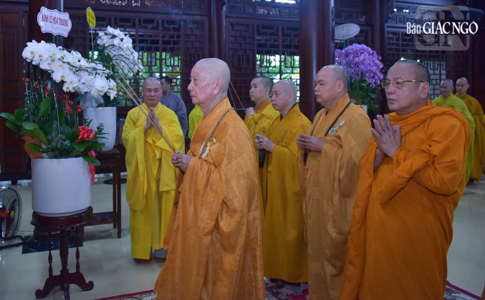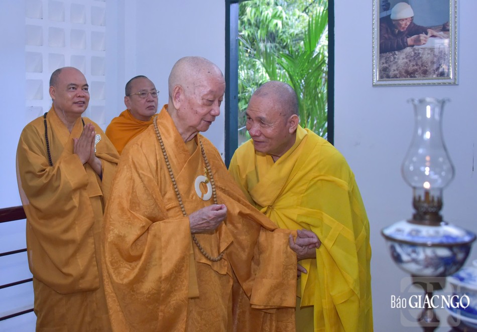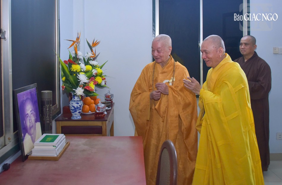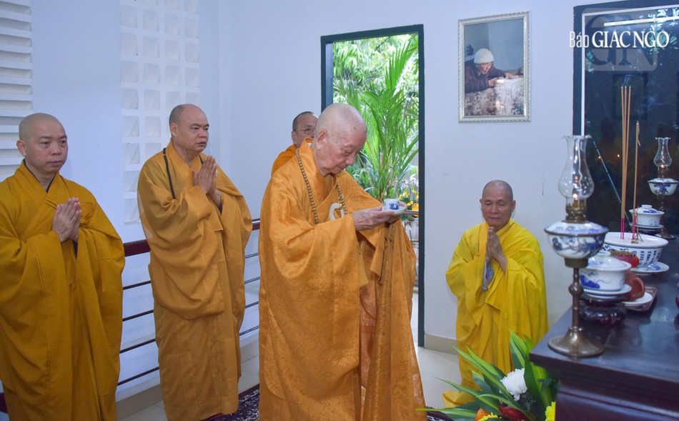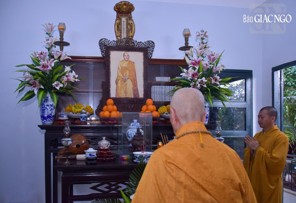 Trước hương án tưởng niệm tôn trí di ảnh, long vị Đại lão Hòa thượng Thích Trí Thủ (1909-1984), Đức Pháp chủ đã dâng hương tưởng niệm công đức cao thâm của bậc long tượng thiền môn, vị giáo phẩm đã có vai trò đặc biệt quan trọng trong việc thành lập GHPGVN, cống hiến trọn cuộc đời cho Đạo pháp và Dân tộc, đặc biệt là trong sự nghiệp đào tạo Tăng tài.