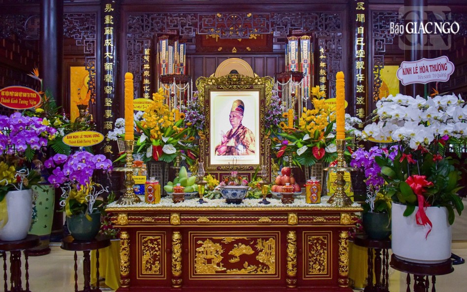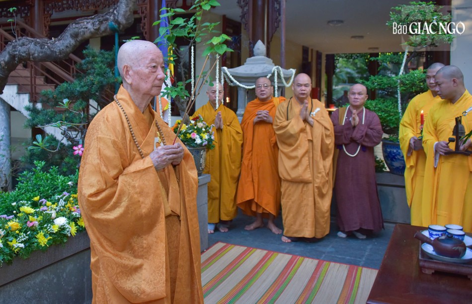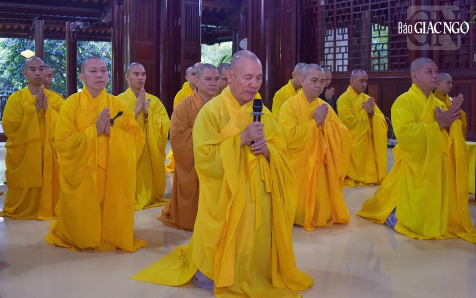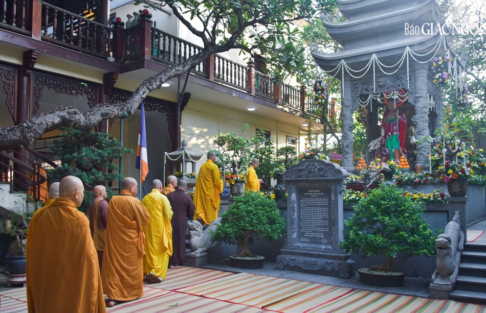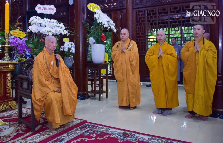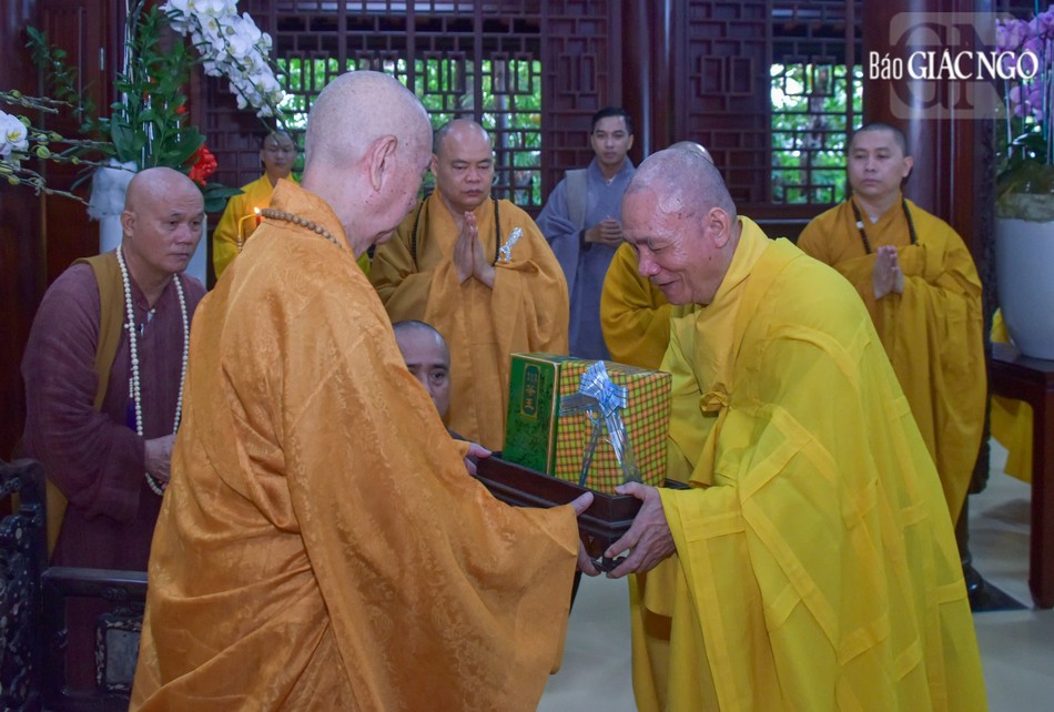 Trước hương án tưởng niệm tôn trí di ảnh, long vị Đại lão Hòa thượng Thích Trí Thủ (1909-1984), Đức Pháp chủ đã dâng hương tưởng niệm công đức cao thâm của bậc long tượng thiền môn, vị giáo phẩm đã có vai trò đặc biệt quan trọng trong việc thành lập GHPGVN, cống hiến trọn cuộc đời cho Đạo pháp và Dân tộc, đặc biệt là trong sự nghiệp đào tạo Tăng tài.