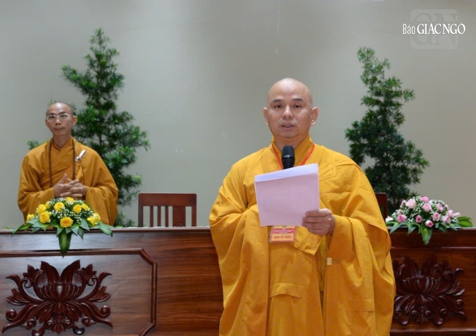 Đại lão Hòa thượng Viện trưởng đã trao khánh vàng và Bằng tuyên dương công đức đến Ni trưởng Thích nữ Từ Nhẫn, Phó Trưởng Phân ban Ni giới T.Ư, Trưởng Phân ban Ni giới GHPGVN TP.HCM vì đã có những đóng góp tích cực trong quá trình xây dựng cơ sở vật chất cũng như hỗ trợ quỹ đời sống cho Tăng, Ni sinh đang tu học nội trú tại Học viện suốt nhiều năm qua.