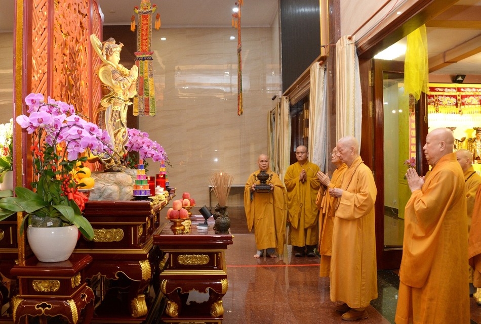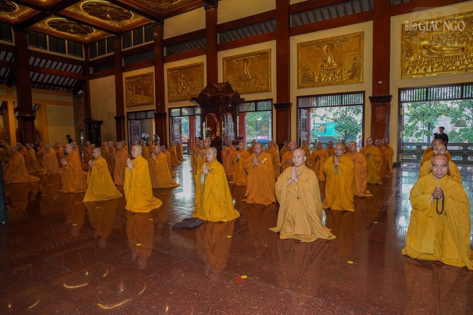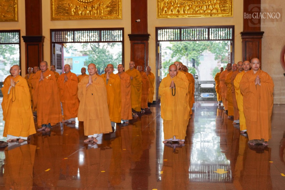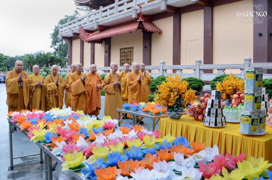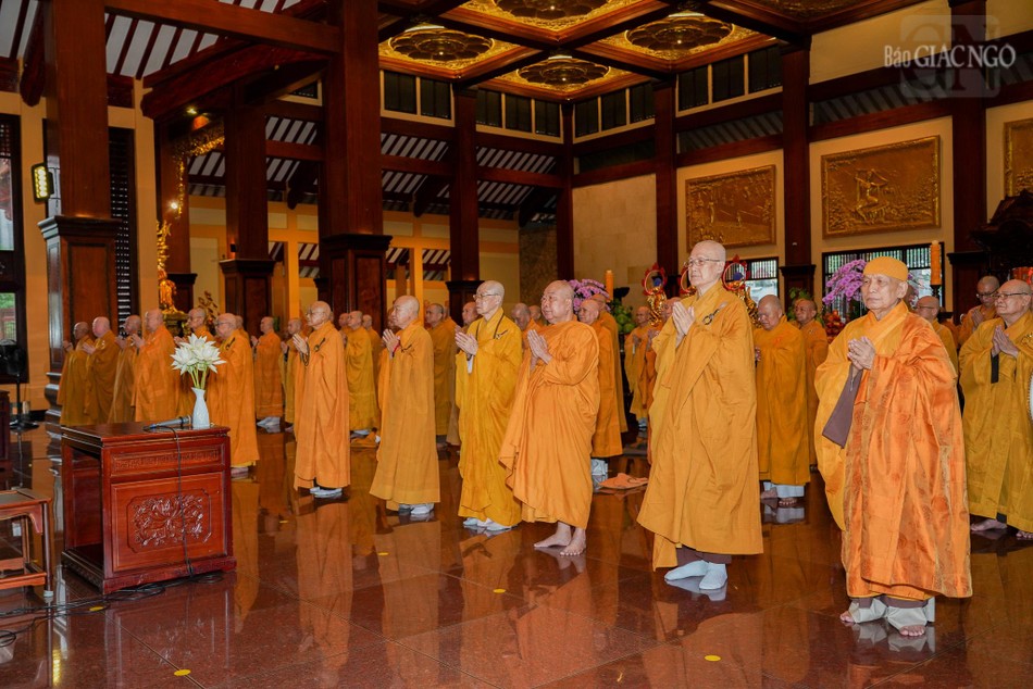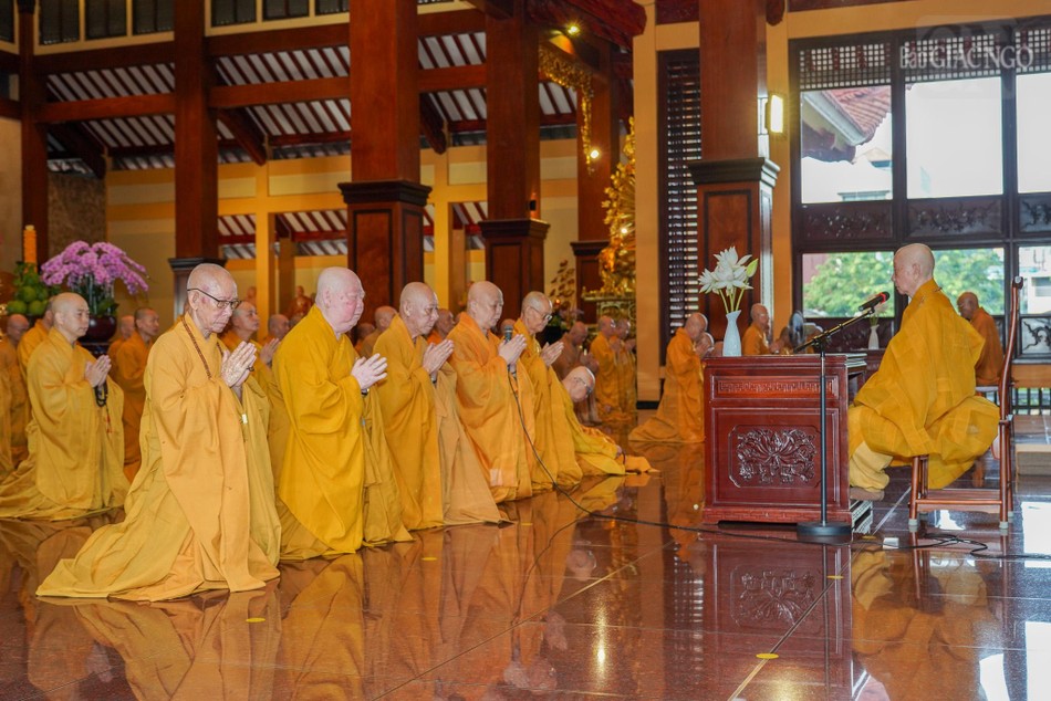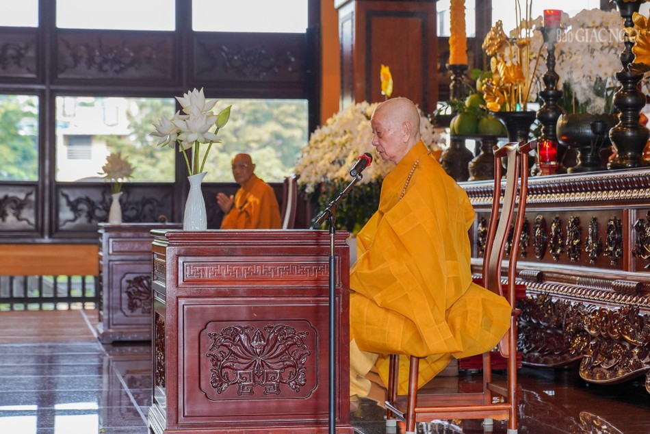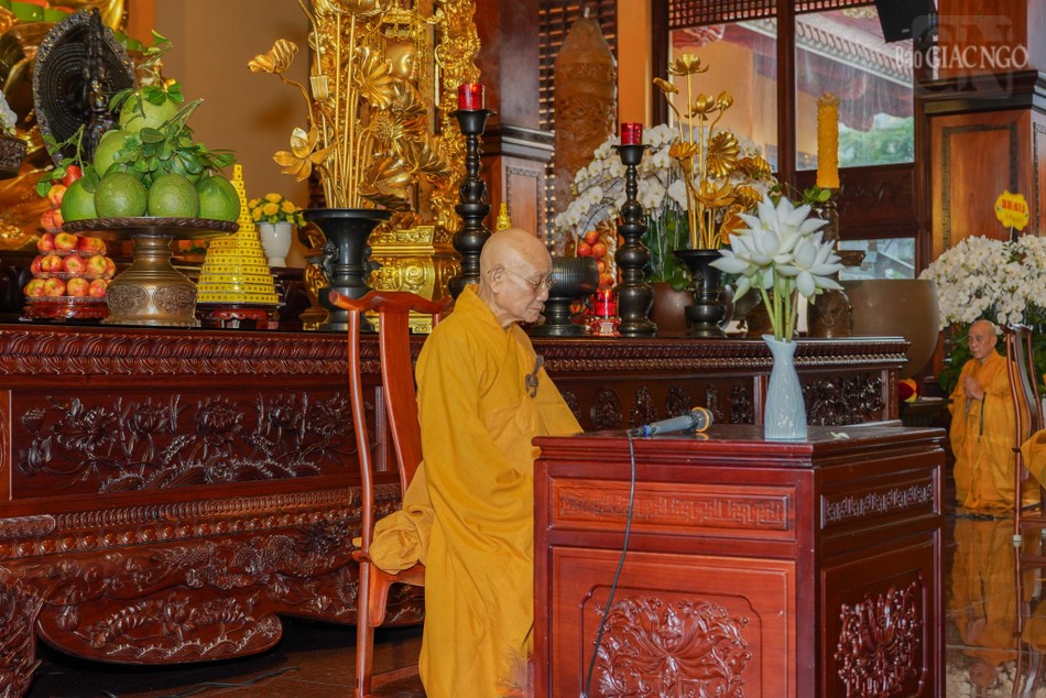 Sau khi tác pháp Tự tứ, Hòa thượng Thích Lệ Trang thay mặt cho toàn thể Tăng Ni dâng lời khánh tuế lên Đức Pháp chủ, chư tôn Trưởng lão Hòa thượng Hội đồng Chứng minh, chư tôn giáo phẩm Chứng minh Ban Trị sự GHPGVN TP.HCM.