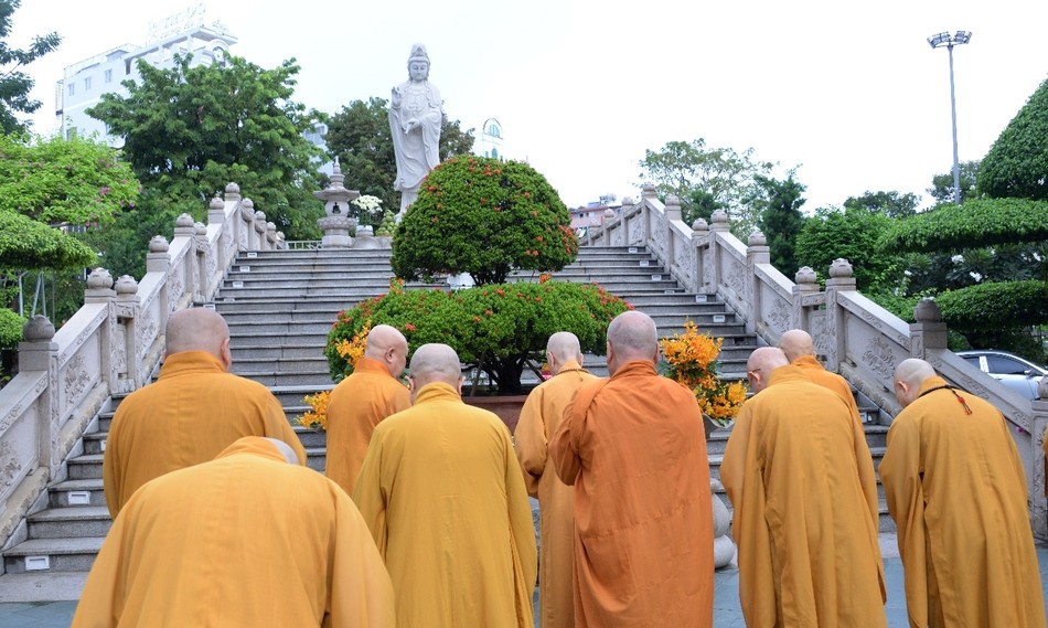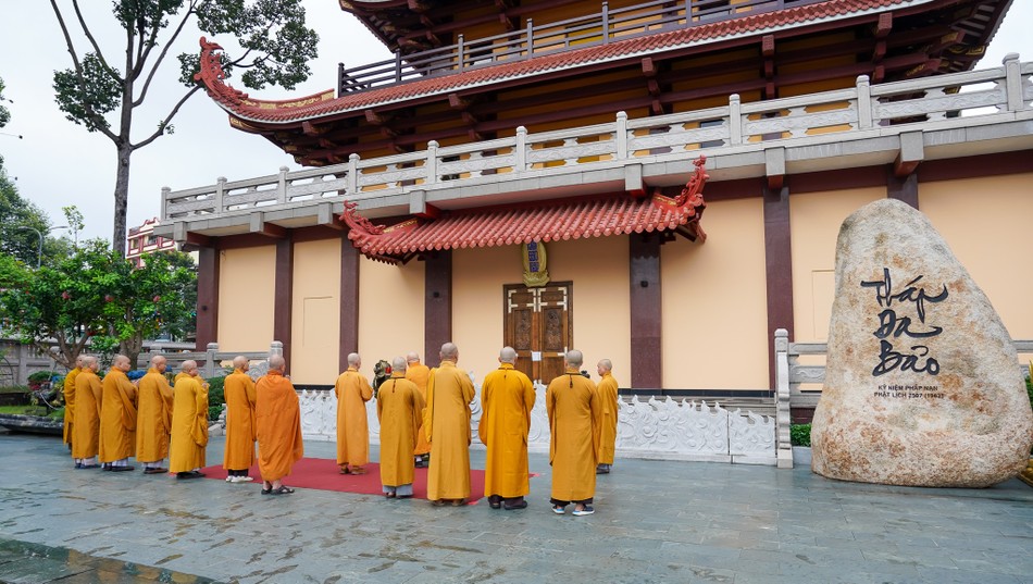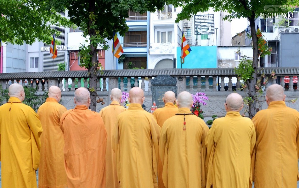 Trước khi cử hành Lễ Tự tứ, Đức Pháp chủ, cùng chư tôn Trưởng lão Hội đồng Chứng minh, chư tôn đức Ban Chứng minh, Ban Trị sự GHPGVN TP.HCM đã vân tập trước bảo tháp Đa Bảo để dâng hương tưởng niệm Bồ-tát Thích Quảng Đức và chư vị tiền bối hữu công đã hy sinh trong Pháp nạn 1963 nhằm bảo tồn Chánh pháp.