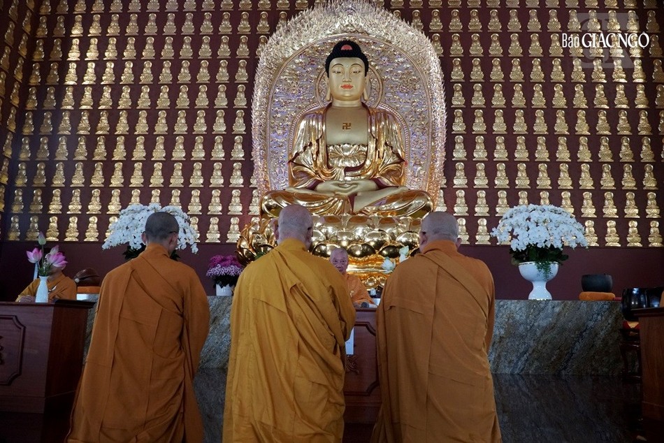Chư Tăng lắng nghe lời giáo giới từ Đức Pháp chủ GHPGVN |