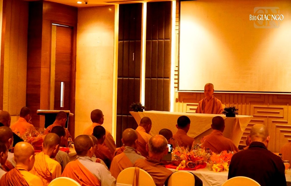 Tại đây, sau khi Thượng tọa Thích Hạnh Chánh thay mặt tác bạch, trình Đức Pháp chủ tổng thể về tình hình của Tăng Ni du học sinh đang theo học các chương trình sau đại học tại nhiều trường đại học tại Ấn Độ, Đức Pháp chủ GHPGVN đã có lời huấn thị sách tấn các Tăng Ni trẻ.